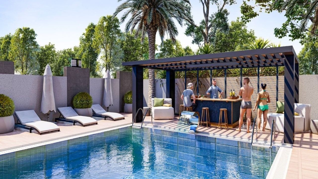Площадь комплекса составляет 1030 м2 и включает в себя один блок. Расстояние до пляжа составляет 1,5 км, поэтому в комплексе предусмотрен трансфер до пляжа. В проекте заявлена прекрасная инфраструктура: спорт зал, бассейн, бар, Римская паровая, хамам и сауна.