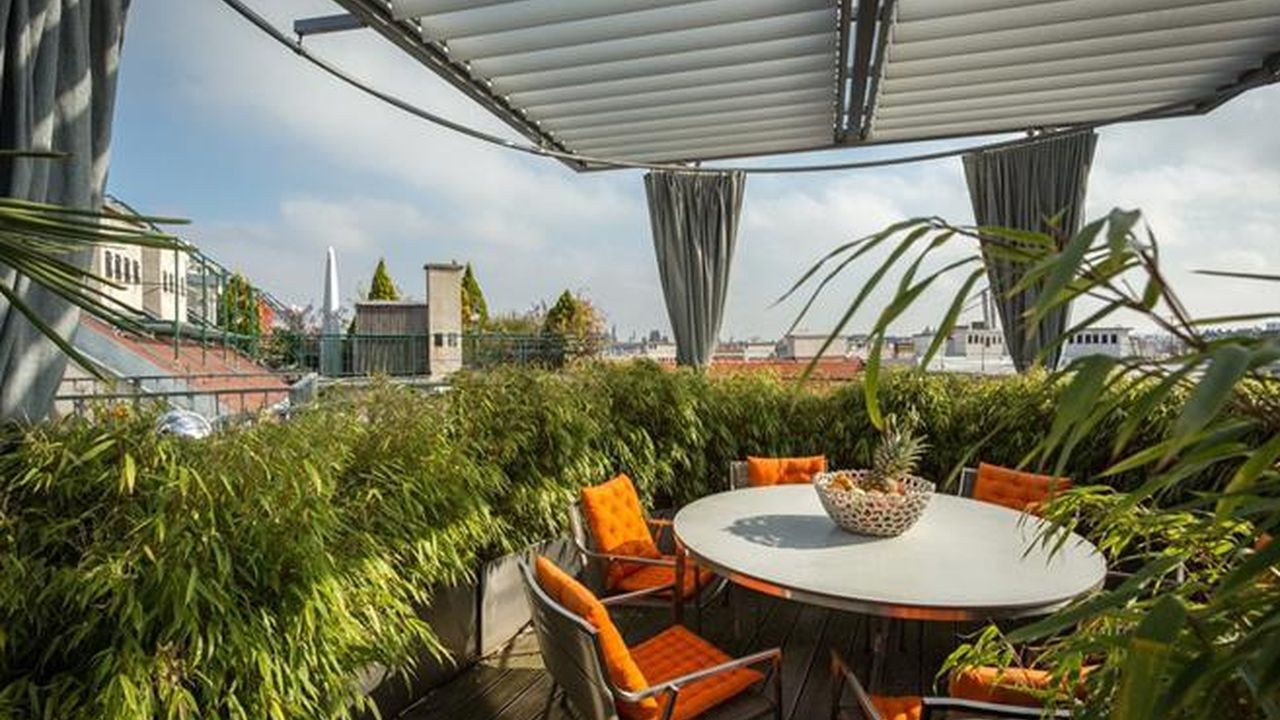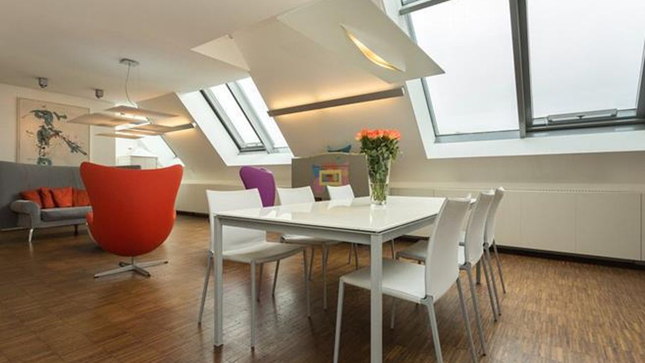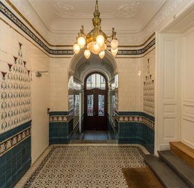 Мезонет занимает два верхних этажа дома, находящегося на тихой улице в восьмом округе Вены – Йозефштадте. Изюминкой этой квартиры является уютная зелёная терраса с видом на город, расположенная на крыше. Дом прекрасный образец архитектуры стиля модерн с изящным фасадом и великолепный холлом.