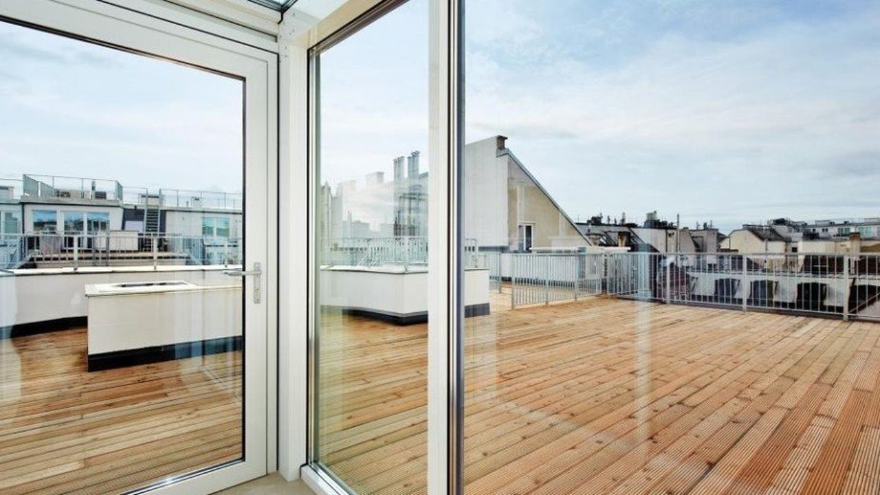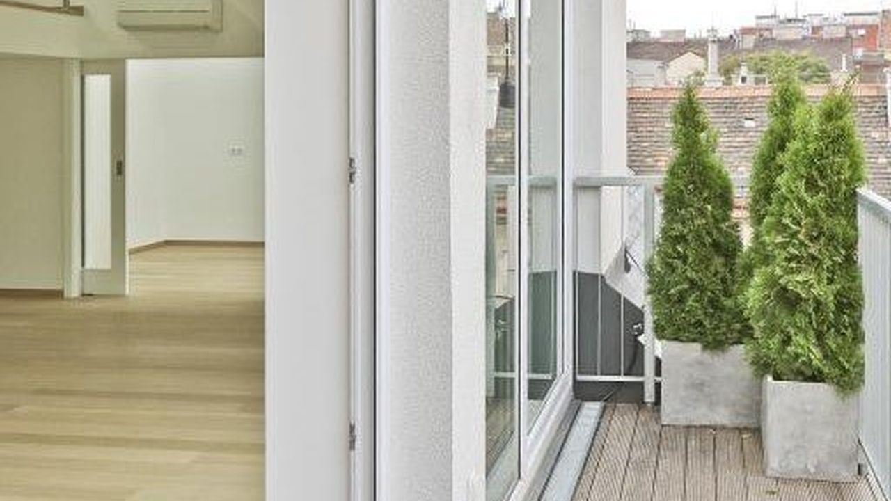 Красивая новая квартира находится на надстроенном этаже с лифтом в историческом здании в центре Вены.