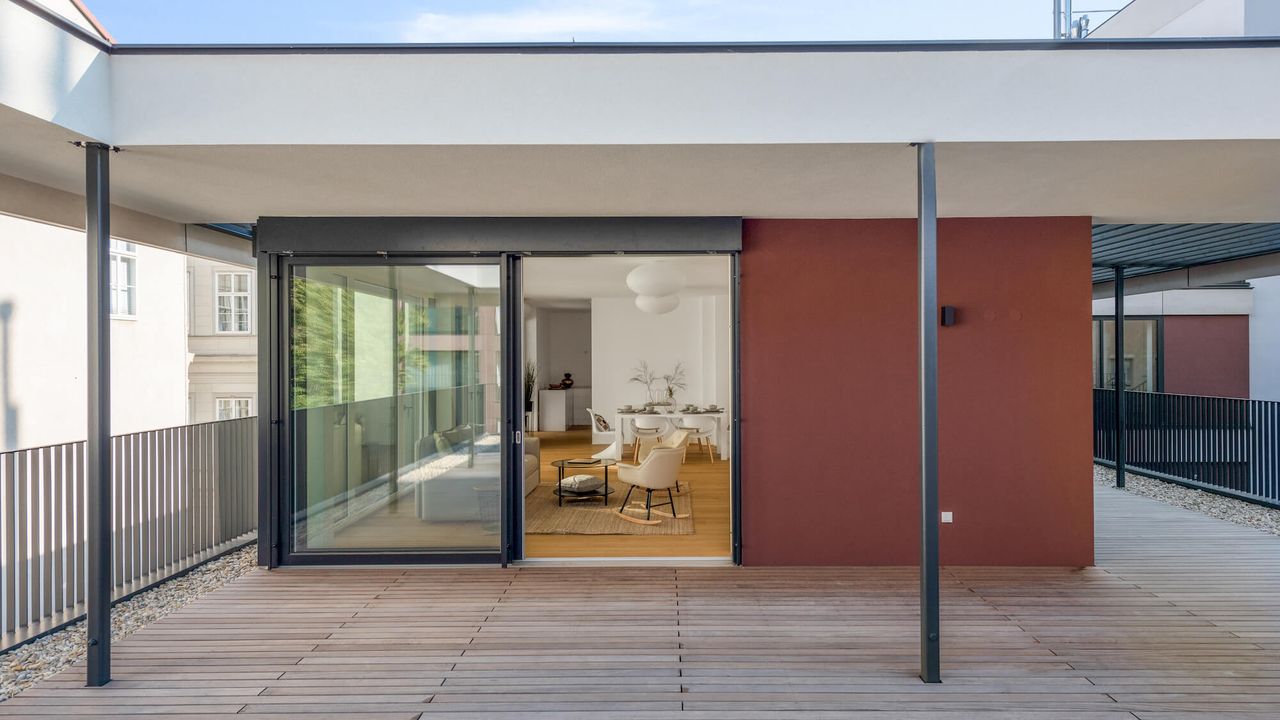 Планировка: гостиная-столовая, современная кухня, 4 спальни 2 ванных и 1 WC, BUS System (умный дом), полы с подогревом, открытые пространства и два парковочных места. Подвал 4,5 м2. Террасы 30 м2 и 10 м2, общая площадь квартиры 232 м2. На Карлсплатц происходило множество знаменательных для Вены исторических событий, и по сей день это место не теряет свою популярность. Здесь, по старой традиции, продолжают проходить венские культурные мероприятия, такие как ярмарки, фестивали, а в парке частенько можно услышать, как играют уличные музыканты. В одном из двориков по улице ведущей к площади был неприметно возведен инновационный жилой комплекс из трёх отдельно стоящих домов, дополненных зелеными насаждениями. Архитектура проекта гармонично вписалась общий контекст исторических зданий и под их строгую цветовую гамму. Исторический фасад здания был реконструирован в светлых тонах, которым соответствуют веранды из легкого бетона новых построек, а в их структуре преобладают теплые красные цвета. Для постройки использовались только первоклассные материалы и оборудование, поэтому квартиры соответствует всем ожиданиям. Зеленые насаждения, внутри дворика, только подчеркнули общую атмосферу некого оазиса. Приятно не только проходить мимо, но и проводить время за беседами на свежем воздухе и как раз для таких случаев здесь установлены деревянные скамейки, а для детей имеется песочница. Именно здесь, словно по волшебству, история пересекается с современностью и все это в центре Вены! Квартира находится на третьем этаже дома D. Благодаря удаленности блока, в этой зоне царит спокойствие и идиллия.