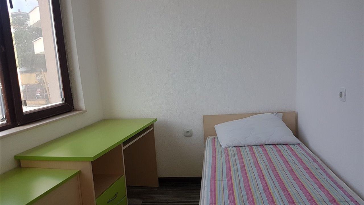 The apartment is situated in a new residential building, year of construction: 2009. Building takes place in the beautiful and famous park area of the town, close to school, stadium, hotels, traditional Bulgarian restaurants with panorama view. The apartment is situated on the first floor, consists of two en suite bedrooms, common terrace, kitchenette with dining area with a terrace, children room, a bathroom and a toilet, a corridor, a toilet. All the rooms are fully equipped and furnished. Everything is brand new, not used!
