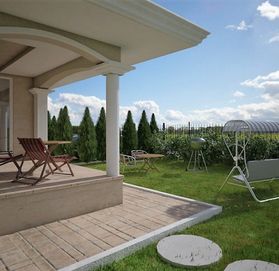 Дома строятся с использованием высококачественных материалов: кирпича, дерева и черепицы, шпаклевок и красок. Перила из кованого железа, окна ПВХ, внешняя теплоизоляция, с освещением энергосберегающими лампами (возможность установки панелей солнечных батарей за дополнительную плату). Напольные покрытия комнат, ванных, прачечных, лестниц и общих частей - стяжка. Центральное водоснабжение. Мебель и оборудование - за дополнительную плату.