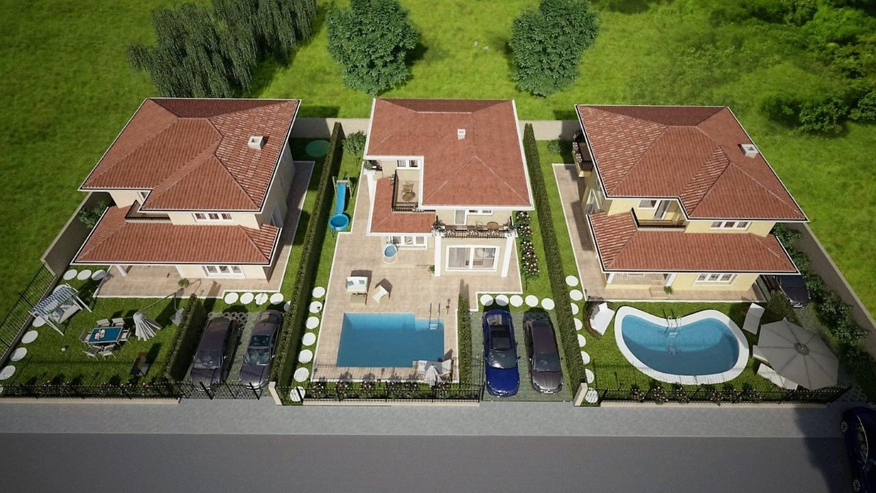 Продается три дома, которые подходят для круглогодичного проживания, расположенные в 3 км от международного аэропорта Бургаса, в 10 км от самого города, и которые будут завершены в декабре 2016г. Дома с панорамным видом на море, своим двориком, площадью 400 м2, двумя парковочными местами. Мини-комплекс огорожен двухметровым бетонным забором, а между домами декоративный забор из зеленых насаждений. Дорога к участку заасфальтирована с уличным освещением.