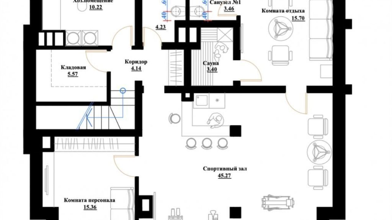1 этаж: гостиная, кухня, терраса, туалеты, гримерки