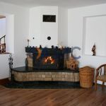 - Просторный зал (60м2) с мраморным камином, мягкая кожаная мебель