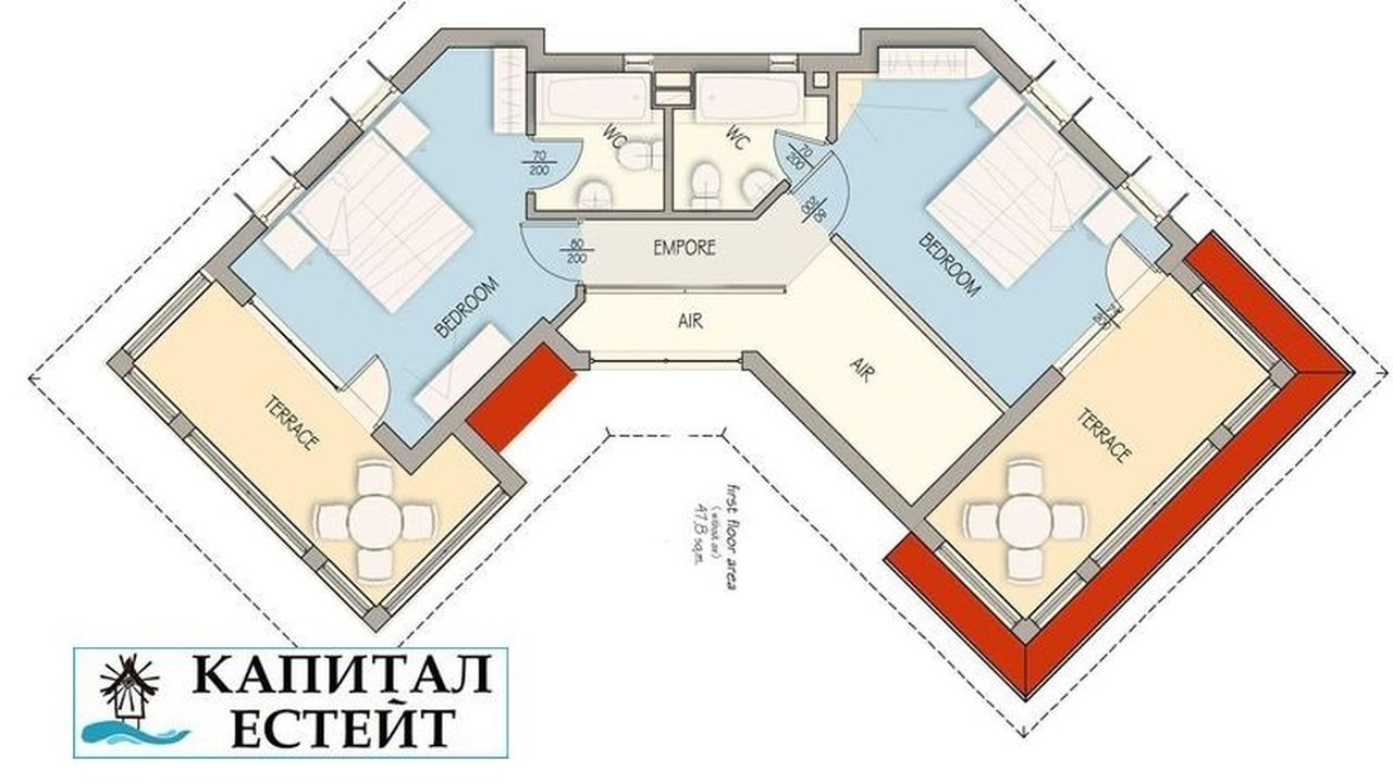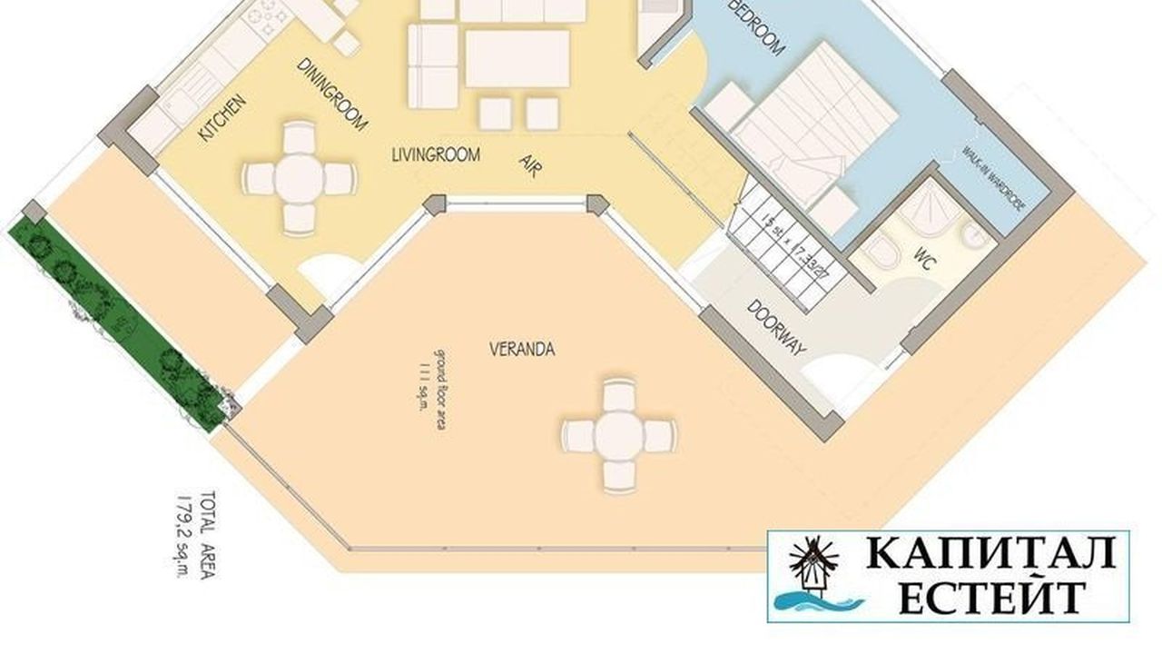 Уважаемые клиенты, вам больше не стоит переживать за сохранность вашего имущества! Теперь, при заключении сделки на покупку недвижимости при помощи агентства недвижимости „Капитал Эстейт” вы получаете страховой полис в подарок! Мы страхуем Ваше имущество бесплатно на 1 год! Продается двухэтажная вилла с тремя спальнями, площадью 179,20 кв.м. Просторные террасы с юго-восточным расположением, частный сад, большая веранда и частный бассейн 40 кв. м. Вилла роскошно меблирована и оборудована. В каждой комнате есть кондиционер, в гостиной камин. Полы во всех комнатах дубовый, на кухне плитка. Вилла состоит из: 1 этаж: веранда, гостиная с кухней, спальня, ванная комната, на втором этаже: две спальни, каждая с ванной комнатой и балконом. Полная меблировка. Комплекс Floral Roads расположен в 2 км от п. Ахелой, в 2 км от моря и в 15 км от Бургаса и аэропорта Бургас. Состоит из 15 самостоятельных вилл, каждая из которых имеет бассейн и сад. Комплекс предлагает своит гостям: ресторан, продуктовый магазин, бассейны, охрана, видеонаблюдение.