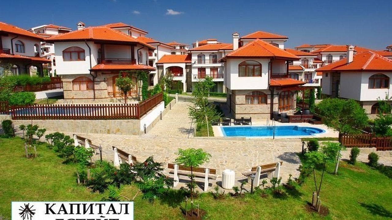 Продается двухэтажная вилла с двумя спальнями, площадью 146 кв.м. Просторные террасы с юго-восточным расположением, частный сад, большая веранда и частный бассейн 40 кв. м. Вилла меблирована и оборудована. В каждой комнате есть кондиционер, в гостиной камин. Полы во всех комнатах дубовый, на кухне плитка. Вилла состоит из: 1 этаж: веранда, гостиная с кухней, ванная комната, на втором этаже: две спальни, каждая с ванной комнатой и балконом. Полная меблировка. Комплекс Vineyards расположен в 2 км от п. Ахелой, в 2 км от моря и в 15 км от аэропорта Бургас. Расходы на содержание недвижимости: 1 930 евро/год. Этап строительства: Здание в эксплуатацию – Акт 16. Уважаемые клиенты, вам больше не стоит переживать за сохранность вашего имущества! Теперь, при заключении сделки на покупку недвижимости при помощи агентства недвижимости „Капитал Эстейт” вы получаете страховой полис в подарок! Мы страхуем Ваше имущество бесплатно на 1 год! Мы готовы организовать смотр недвижимости в удобное для вас время. Мы готовы организовать смотр недвижимости в удобное для вас время. Обратитесь к ответственному менеджеру по продажам и проинформируйте его, когда бы Вы хотели приехать на смотровой тур. Вы можете забронировать недвижимость, заплатив невозмещаемый задаток в размере 2 000 евро банковским переводом на фирменный счет компании. После получения задатка недвижимость бронируется, осмотры с другими потенциальными покупателями производиться не будут, и начнется изготовление необходимых документов по оформлению сделки.