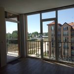 Студия с видом на внутри-дворовую территорию и бассейн, солнечная и просторная с большими панорамными окнами и балконом. Есть кухонная зона с мойкой и плитой. На полу керамическая плитка под ламинат. Стены окрашены в светлые тона.