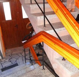 Стены - кирпичные, на полу - терракот и ламинат, окна ПВХ. В доме есть центральное отопление, отремонтирована система водоснабжения, состояние дома - очень хорошее, перед домом красивый двор.
