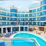 Комплекс Аквамарин состоит из 3 секций, которые вместе образуют почти круглый силуэт здания. С его террас открывается невероятная панорама на залив Обзор и окружающие холмы, утопающие в зелени. Внешний вид комплекса дополняется бассейном для взрослых и детей во внутреннем овале здания, зелеными насаждениями с хорошо развитой архитектурой, парковкой с контролируемым доступом и декоративными аллеями, ведущими к пляжу. В центральной части отеля расположен ресторан.