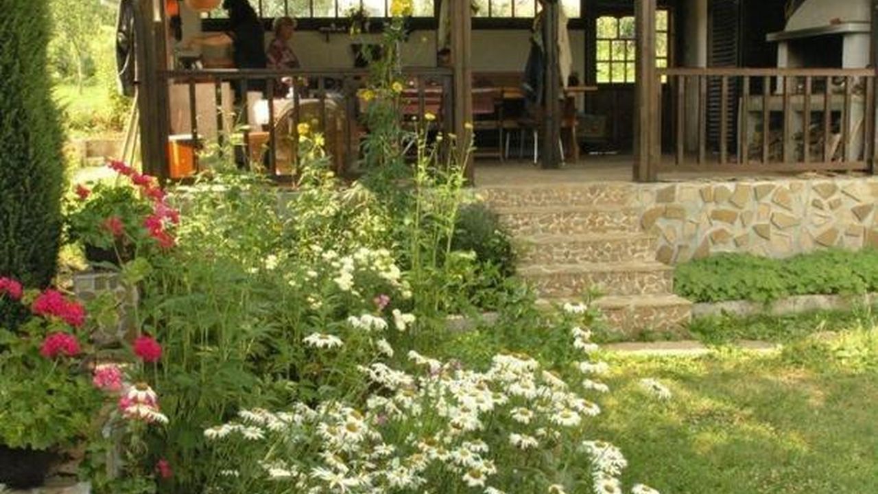 Ухоженный сад (серебристая сосна, два аризонские кипариса, деревья в комбинации с множеством роз, разнообразных садовых цветов, среди которых магнолия, альбиция, оформляют прекрасный цветовой ансабль просторного двора. Много фруктовых деревьев: персики-5, яблони-7 вида, груши-4, черешни-4, сливы-2 вида, абрикосы, смоквы-5, райская яблоня-1, орех, виноградник, ягоды, которые дают на протяжении всего лето хороший урожай (много вкусных и ароматных фруктов)).