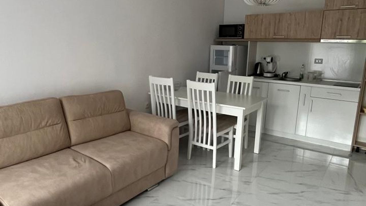 Квартира продается в отличном состоянии, полностью оборудована и стильно меблирована, со следующей планировкой - прихожая, просторная гостиная с кухней и обеденной зоной, уютная спальня, ванная комната с туалетом и душевой кабиной, терраса с видом на бассейн и внутреннюю территорию комплекса.