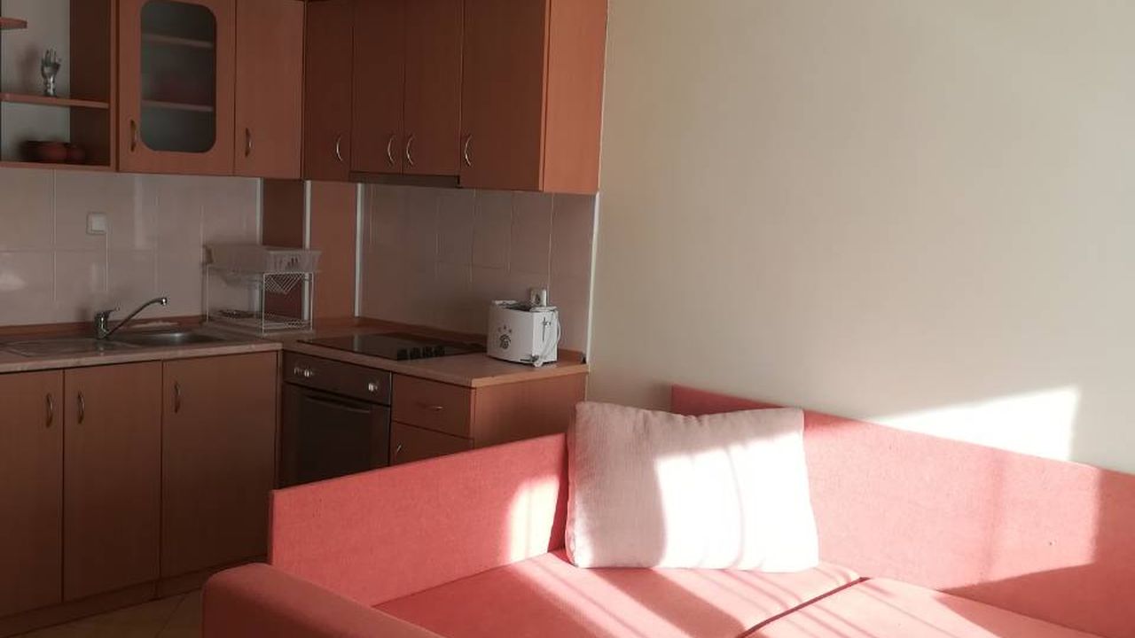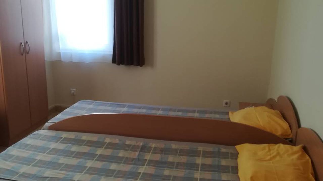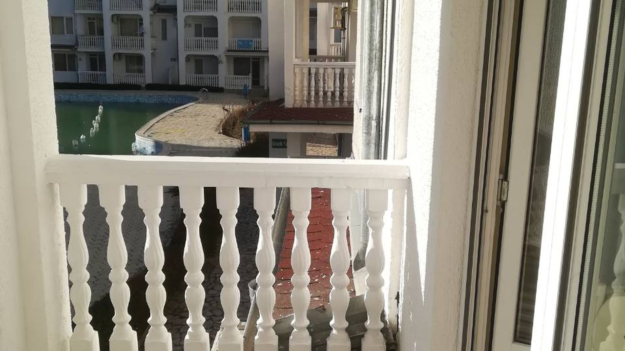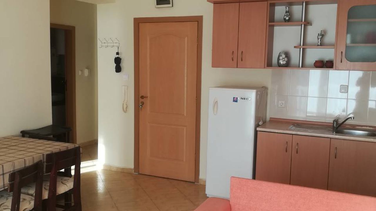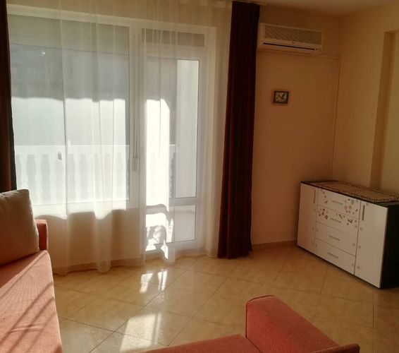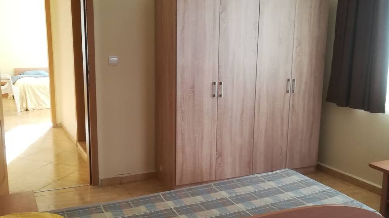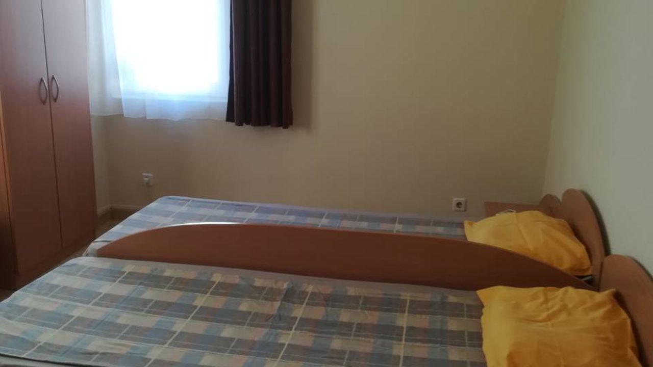 Продается светлая 3-х комнатная квартира в комплексе "Браво 5 " в центре Солнечного Берега, недалеко от ресторана "Джани". Квартира на 2-ом этаже, без лифта. Квартира смотрит на юг (гостиная), запад (главная спальня) и на северо-запад (вторая спальня). Состоит из коридора, санузла, 2 спален, гостиной с кухонным боксом и 2-х балконов (в гостиной и в главной спальне). Комнаты не проходные. Квартира после ремонта, в хорошем состоянии. 2 кондиционера. Индивидуальный счетчик эл-ва. Ат 16. Бассейн, зеленая территория, контроль доступа в комплекс, охрана, парковка перед комплексом. такса в комплексе = 6 евро/м2. До пляжа 500м.