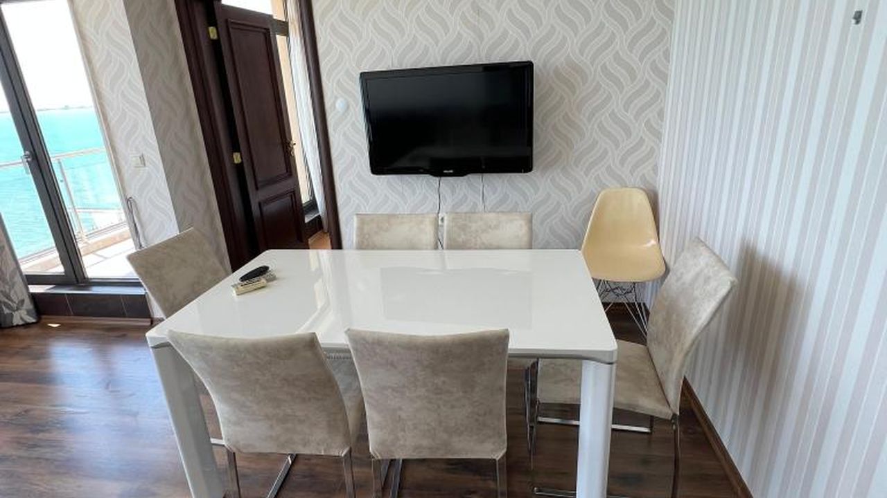 Квартира продается в отличном состоянии, готова к заселению, со следующей планировкой — прихожая, просторная гостиная с обеденной зоной и кухней, две спальни, туалет, небольшой коридор, ванная комната с туалетом и душевой кабиной, две террасы с уникальным панорамным видом на море.