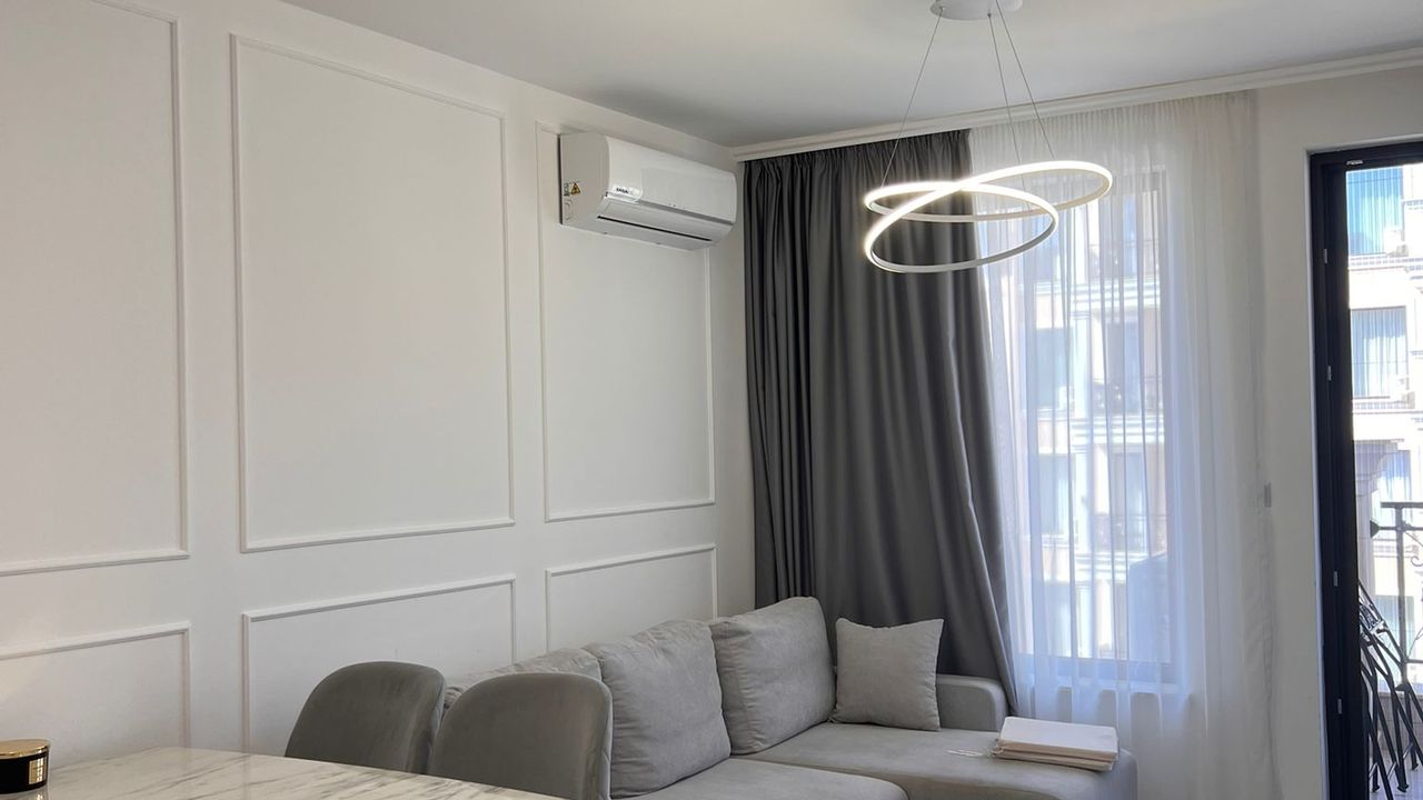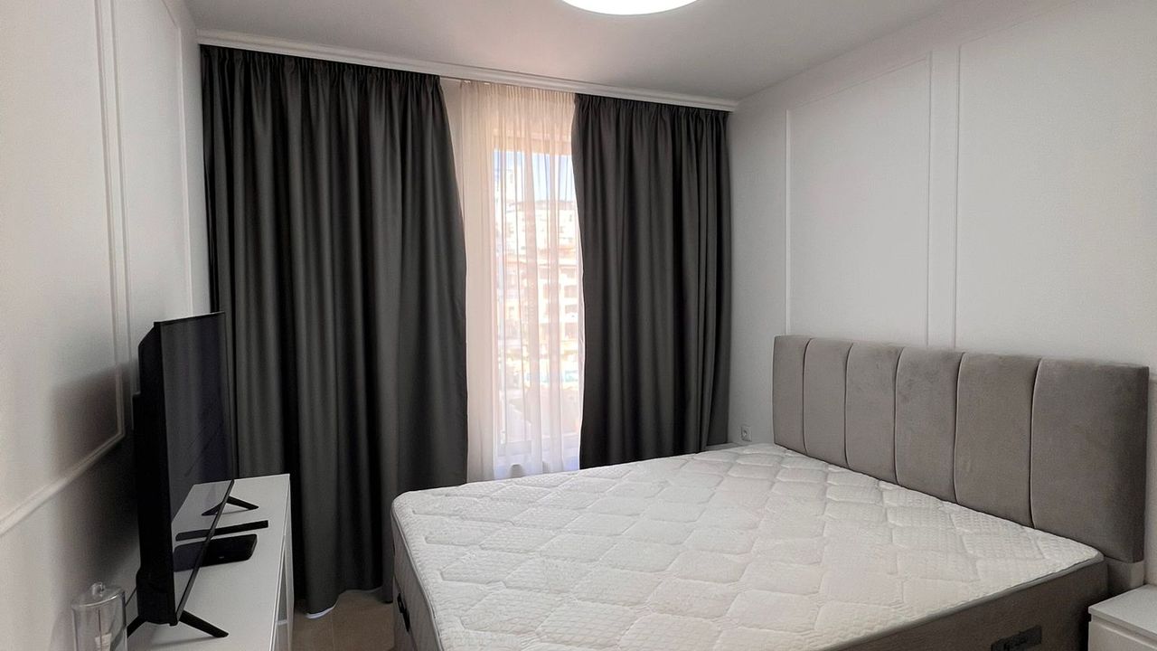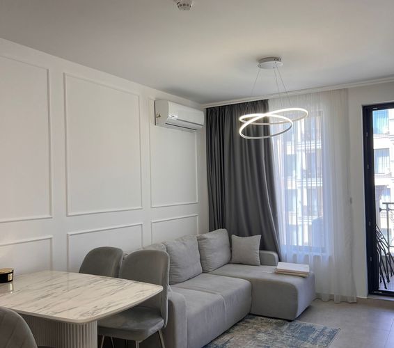 Предлагаем на продажу полностью меблированную и оборудованную двухкомнатную квартиру в комплексе „Polar Star“ в Святом Власе. Квартира расположена на пятом этаже и имеет площадь 52 кв. м. Пространство хорошо распределено - светлая и функциональная гостиная, а спальня обеспечивает комфорт и уединение. С террасы открывается приятный вид на бассейн комплекса и горы, что создает ощущение спокойствия.