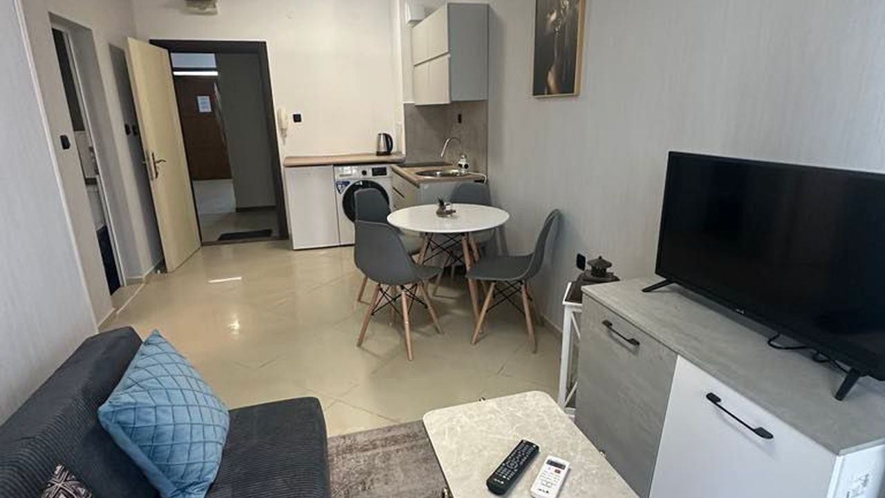 Предлагаем на продажу компактную двухкомнатную квартиру с частичным видом на бассейн и приятным видом на ухоженный двор в комплексе “Домус”, расположенном в тихом районе Святого Власа, всего в 250 метрах от пляжа и моря. Квартира расположена на первом этаже и имеет общую площадь 43 кв. м. Квартира продается полностью меблированной и оборудованной, в очень хорошем состоянии и готова к заселению.