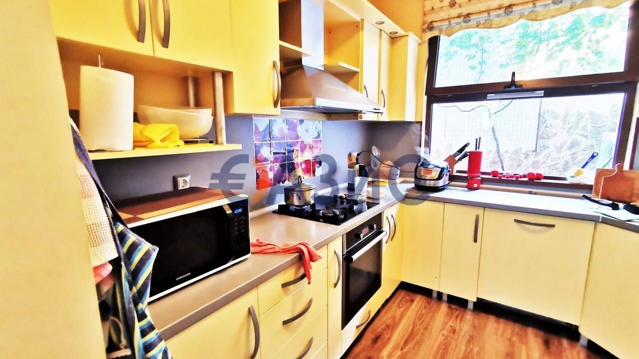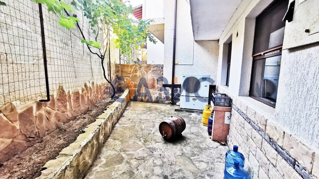 Дом состоит с холла разделенного камином на две зоны, просторной кухонной зоны с зоной отдыха и террасы; заднего двора с выходом в гараж, 4 спален, с выходом на террасу, трех ванных комнат, двух кладовых. Дом оборудован кондиционерами и электрическими обогревателями. Возле дома есть два персональный гаража. Мебель и техника остаются в доме. Дом полностью утеплен: на первом этаже все окна двойные, в доме есть камин, паровое отопление от пилетного котла; сплит-система. Комплекс, где находится апартамент закрытого типа. До моря 100 метров. До центра Святого Власа 1000 метров, до аэропорта 35 км.