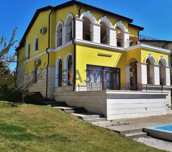 Продается двухэтажная вилла в квартале Марина в элитном гольф комплексе "Lighthouse Golf &Spa Resort" с панорамным видом на море (вид на курорт Албена), а так же на гольф поле. Год строительства 2010. Кирпич, камень, натуральная черепица. Внутренняя отделка: венецианская штукатурка, пол: дубовый паркет. Общая площадь 410 кв.м.,5 спален, 5 санузлов, 4 ванные(отделка испанской сантехникой и итальянской плиткой), душевая кабина класса люкс, кухня (дерево, гранит) и столовая с выходом на террасу, двухуровневый холл с камином и террасой. Полностью обставлена дорогой итальянской мебелью (массив). Оборудована бытовой техникой. Четыре большие террасы, отдельный гараж, бассейн. Участок земли 960 кв.м. Цена 495 000 €.