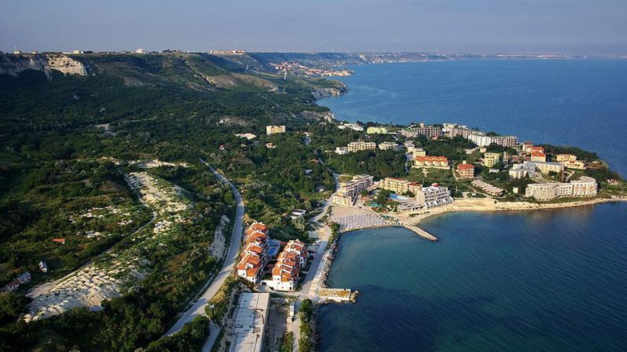 элитный участок на первой линии Балчик Болгарии с небольшим песчаным пляжем перед ним