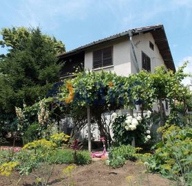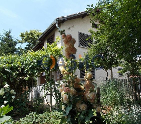 Состоит из 2 этажей и участка 930 кв.м, на территории которого имеется гараж, барбекю зона, небольшой бассейн (требует ремонта), колодец, отдельные постройки для хранения садового инвентаря и сад с плодовыми деревьями и виноградником.