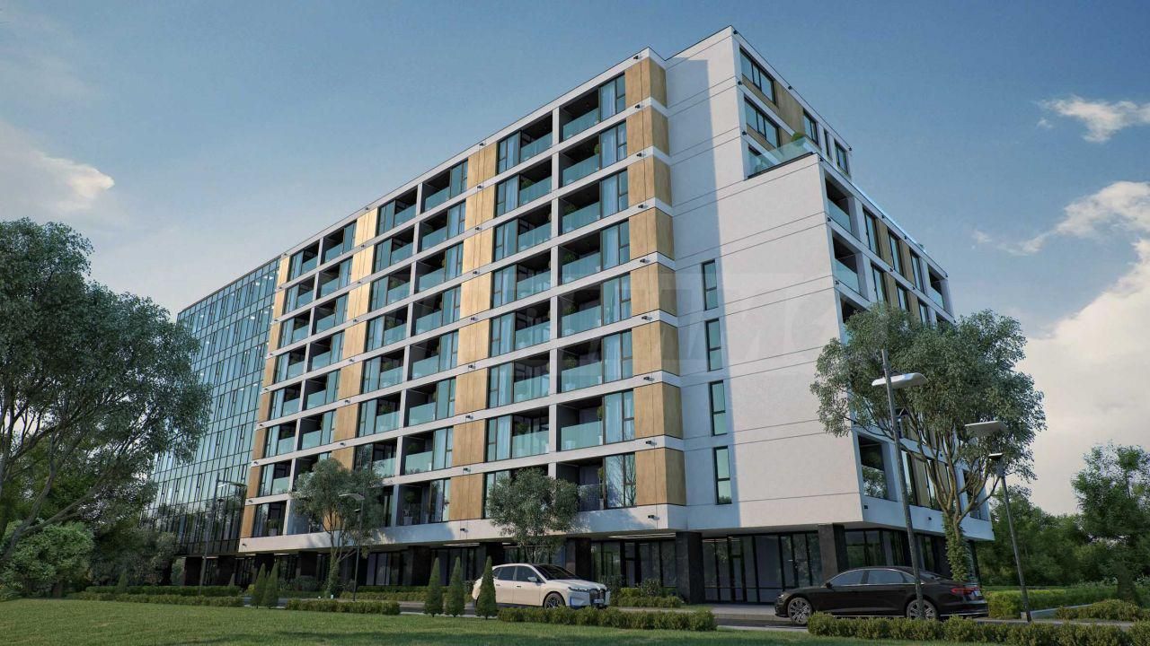 • The turnkey completed apartments are issued with high-class materials - flooring made of porcelain stoneware or laminated parquet, finely plastered and painted with latex paint walls and ceilings, Schneider Electric plugs and switches are installed, installed interior doors, fully finished bathrooms and toilets with faience and all accessories including shower cabins, toilet bowls with built-in structure, sinks, etc. Lighting fixtures and furniture are not included.