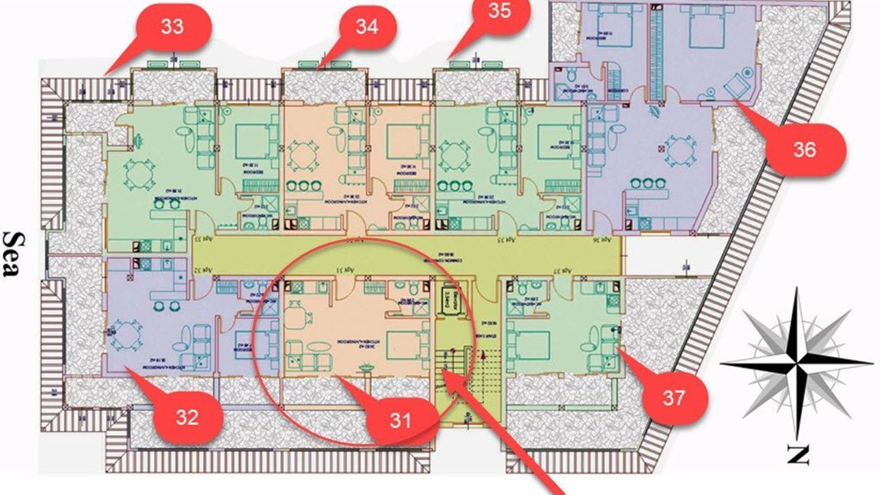 В верхней части здания находится общая терраса на крыше с панорамным видом на море.