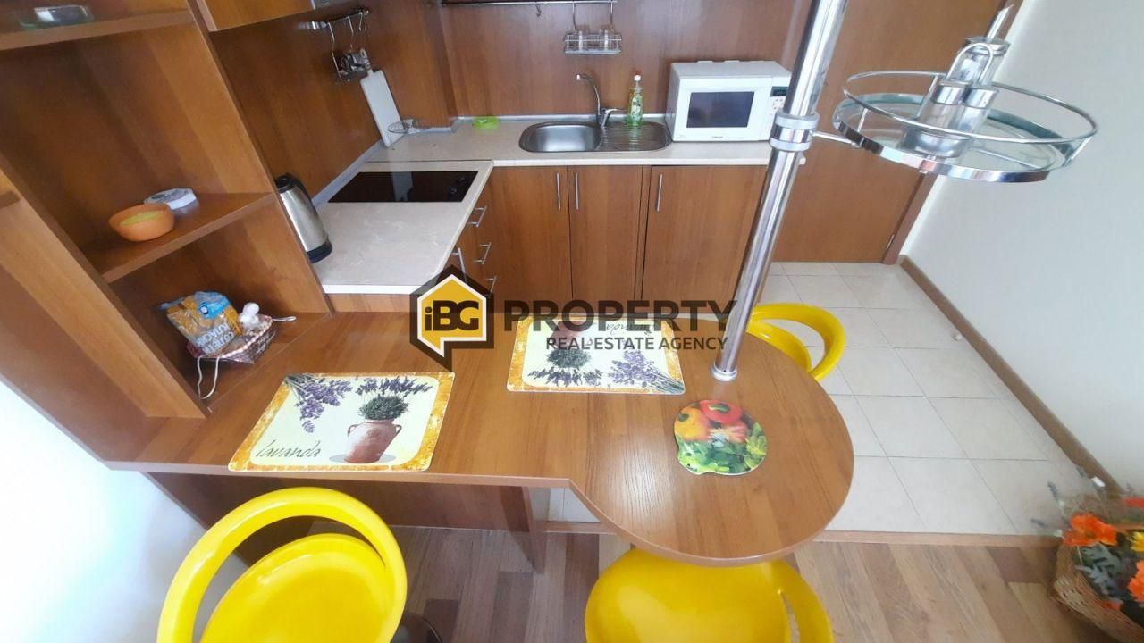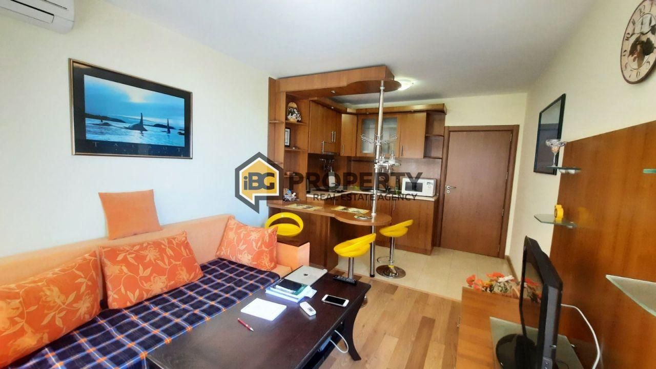 Эксклюзивное предложение! IBG Property предлагает меблированную однокомнатную квартиру на курорте Golden Sands. средний этаж полностью меблирован и оборудован неоспоримым видом на море и лес 300 м от пляжа рядом с остановкой общественного транспорта Общая площадь квартиры 63 кв.м Этаж 4 из 6 /есть лифт/. Вид на море: большой коридор со встроенным шкафом, гостиная с кухней и выход на широкую террасу с видом на море, отдельная спальня с выходом на террасу, ванная комната с туалетом. Квартира предлагается полностью меблирована и оборудована, готовы к заселению. Здание с Актом16. Есть бассейн, видеонаблюдение, консьерж. Тихое и спокойное место, с множеством зелени и пространства, в 200 метрах от остановки общественного транспорта и в 300 метрах от пляжа. Имущество подходит как для постоянного проживания, так и для летних каникул. BG Property - это компания с большим опытом работы на рынке недвижимости. Наши сотрудники организуют для вас просмотр, консультацию и проконсультируют в сфере инвестиций в недвижимость.