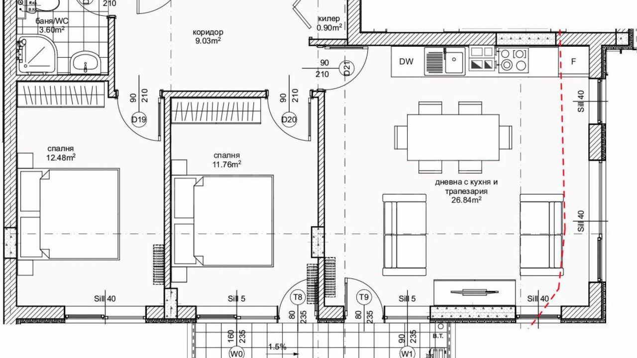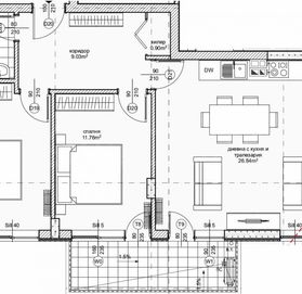 Номер:. ВАР-106574 Мы представляем трехкомнатную квартиру площадью 95,20 м2 на продажу, в новом жилом доме в Вазражданском районе, городе Варна. Проект - работа проверенного строителя, с строительством начиная с 2022 года и планируется завершить к 04.2024 Здание будет построено с высококлассными энергосберегающими материалами и с практической планировкой квартир. Недвижимость сдается в соответствии с BDS. Квартира расположена на 6 этаже, с видом на север/восток, состоит из: большого коридора - 9.03 м2. шкаф - 0.9 м2; ванная/туалет - 3.6 м2; спальня-1 - 12.48 м2;. спальня-2 - 11.76 м2;. гостиная/кухня - 26.84 м2;. терраса с выходом из гостиной и спальни-2. О комплексе Здание имеет удобный доступ, разработанный с эффектным современным фасадом. Здесь вы найдете сочетание чудесного вида на город и море. Он рассчитан на 11 этажей с различными типами квартир: студий - 10 шт;. двухкомнатные квартиры - 65 шт; трехкомнатные квартиры - 39 шт; подземные и наружные парковочные места для автомобилей - 114 шт; парковочные места для велосипедов - 164 шт. План оплаты: 30% по предварительному соглашению; 40% Закона 14; 20% от закона 15; 10% - Акт 16; депозит €2000. Удобное расположение: 120 м от парка Вазраждан; 250 м от автобусной остановки; 300 м от крупных супермаркетов; 350 м от детского сада 33 Delfinche; 400 м от начальной школы "Никола Ю. Ваптсаров" и т.д. Расположение в отличной городской среде, недалеко от парка, общественного транспорта, школ и детских садов, медицинских учреждений, спортивных сооружений, детских площадок, гипермаркетов, торгового центра, ресторанов, бассейна и т.д. способствует недвижимости здесь, подходящим для мирной семьи, а также длительный срок
