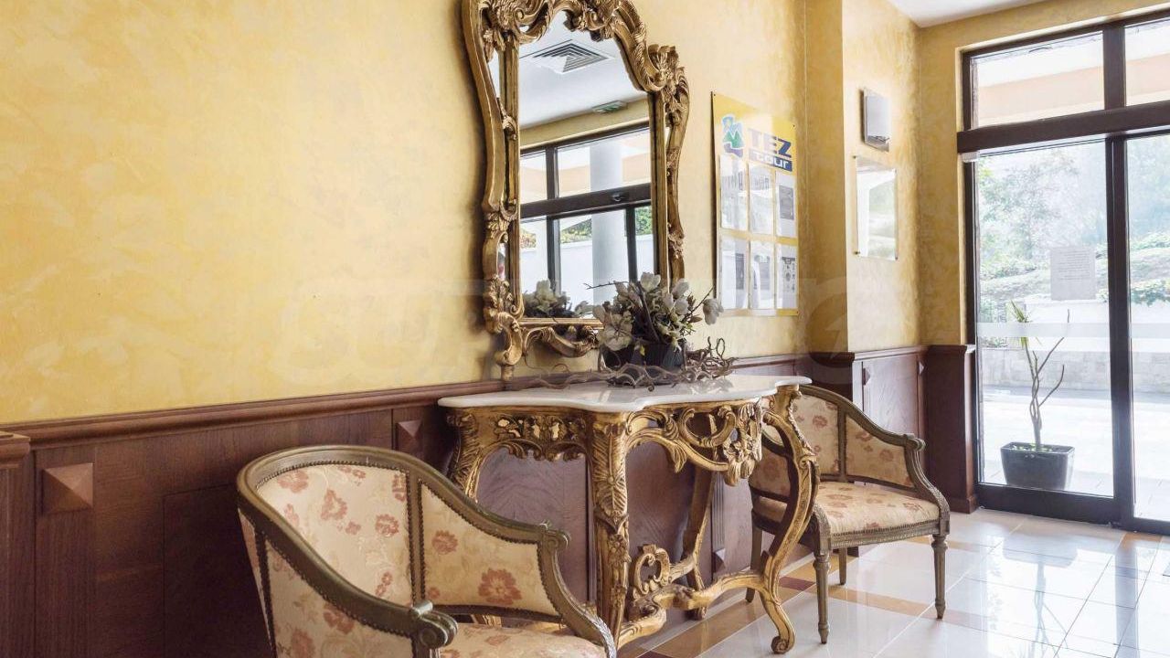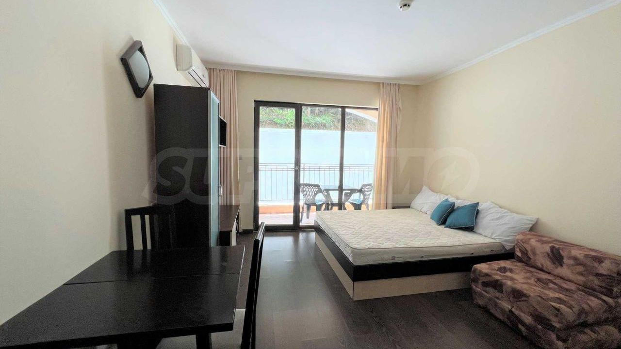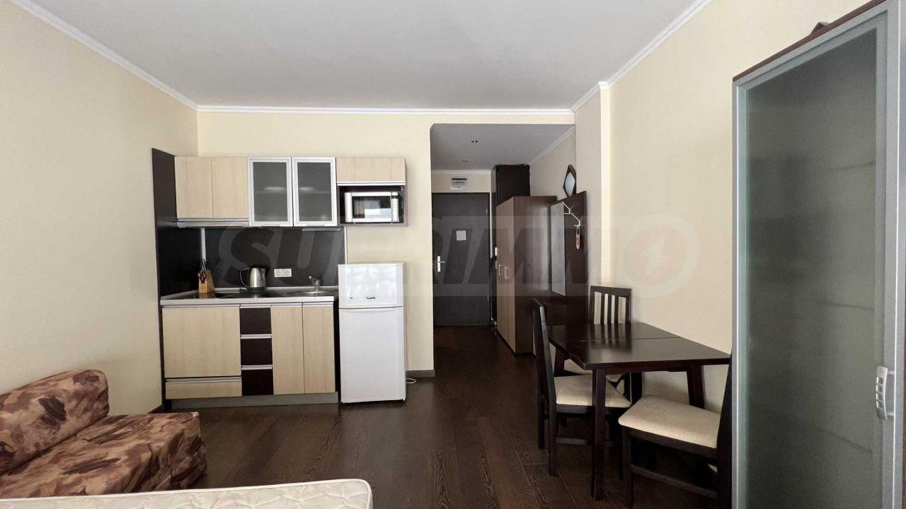 Телефон: +359 882 250 421 Мы представляем удобную студию для продажи в комплексе с бассейном и удобствами в курорте Golden Sands. Комплекс расположен всего в 120 метрах от пляжа и имеет круглосуточную охрану, видеонаблюдение, охраняемую парковку, два открытых бассейна с детской секцией, прием, лобби-бар, бар у бассейна, ресторан, тренажерный зал, спа-центр и игровая площадка. Собственность расположена на 2-м этаже, ориентирована на северо-запад и поставляется с удобной мебелью и оборудованием. Имеет кондиционеры, холодильник, стиральная машина, телевизор и оборудованную кухню. The Golden Sands Resort расположен в Национальном парке «Золотые Пески», что означает, что есть много зелени. Курорт имеет обширные парковые зоны, где строительство запрещено и также окружено лесным фондом. Пляж известен по всему миру для его широкого песчаного стриптиза и чистой морской воды. В окрестностях расположены рестораны, кафе, продуктовые магазины, банки, детские и спортивные площадки, водные и детские достопримечательности, АЗС и остановки общественного транспорта. Квартира подходит как для постоянного проживания, так и для отдыха в летний сезон. Стоимость обслуживания - 11 евро/м2 в год. Для получения дополнительной информации или просмотра, свяжитесь с брокером, ответственным за предложение.
