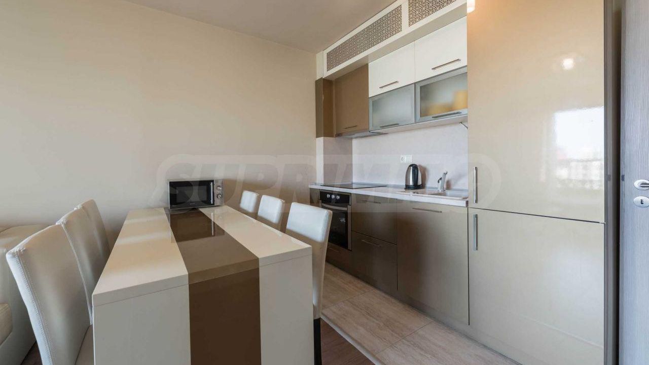 Номер:. ВАР-107872 Мы представляем просторную трехкомнатную, отлично меблированную квартиру площадью 116 кв.м., всего в 150 метрах от пляжа Золотых Песок. Собственность расположена в круглогодичном комплексе, подходит как для летнего отдыха, инвестиций, так и для постоянного проживания. Квартира меблирована качественной и функциональной мебелью и использовалась только для отдыха у владельца. Еще не было сдано в аренду, но при желании можно арендовать сервисной компанией комплекса. Цена за ночь в летний сезон на трехкомнатную квартиру в комплексе - от 150 до 200 евро. Квартира состоит из гостиной с мини-кухней и столовой, коридора, двух спален, двух ванных комнат с туалетом и двумя террасами. Воздействие юг/север. Из гостиной открывается вид на бассейны комплекса и моря. На территории комплекса: рецепция; ресторан и бар у бассейна; фитнес; четыре открытых бассейна; открытая и крытая парковка; детская площадка; богатые сады. Золотые Пески Курортный комплекс расположен на территории Природного парка «Золотые пески» и строительство ограничено в его районе. Площадь сохранила обширные ландшафтные парки и сады. Пляж известен по всему миру для его широких песчаных полос и одной из самых чистых морских вод. В окрестностях расположены рестораны, кафе, марина, банки, магазины, супермаркеты, спортивные и детские площадки, мини-гольф и другие достопримечательности, а также круглогодичный общественный транспорт, соединяющий комплекс с городом Варна. Если вы хотите получить дополнительную информацию или просмотр, пожалуйста, свяжитесь с брокером, ответственным за предложение.