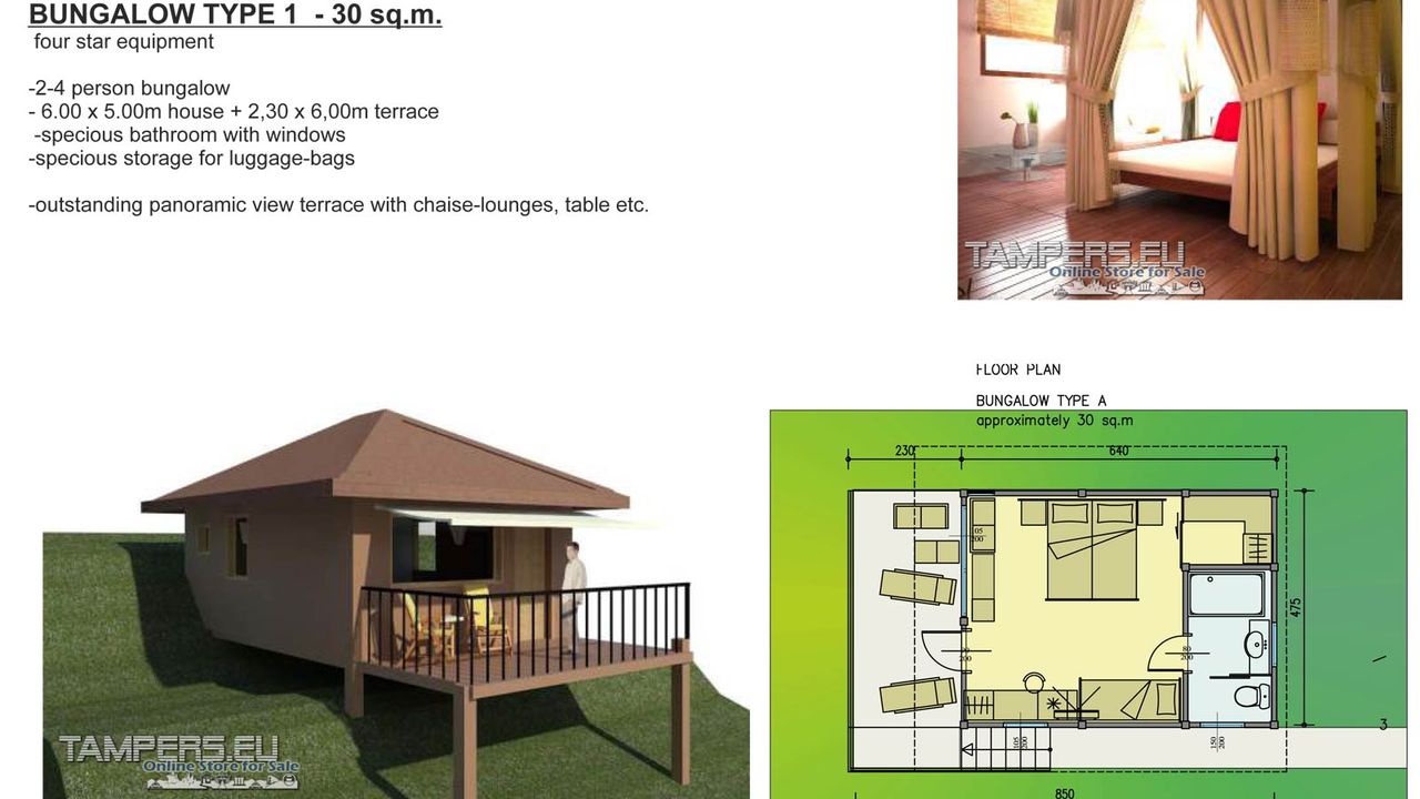 - 3 типа бунгала дома (для двух человек / семья / двухместный комнату)
