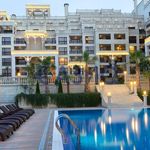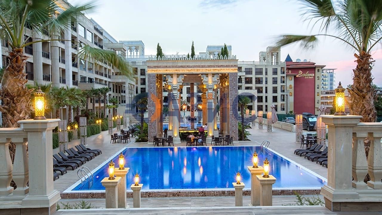 На территории комплекса: 4 бассейна, ресторан, бар, фитнес центр, анимация, спортивные секции,подземная и наземная парковка, охрана и видеонаблюдение.