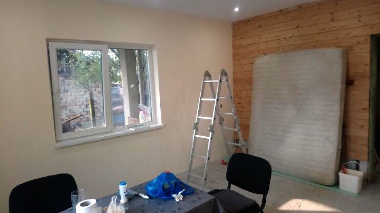 Проведён частичный ремонт на две комнаты - кухню и гостиную, так как там стены с изоляцией, пол в кухне-ламинат, окна-поменяны на ПВХ.