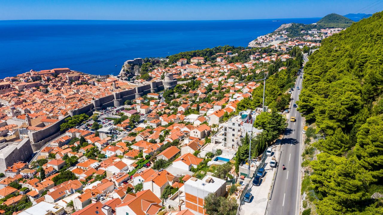 In the front of Dubrovnik Old town. Building is connected on main road.