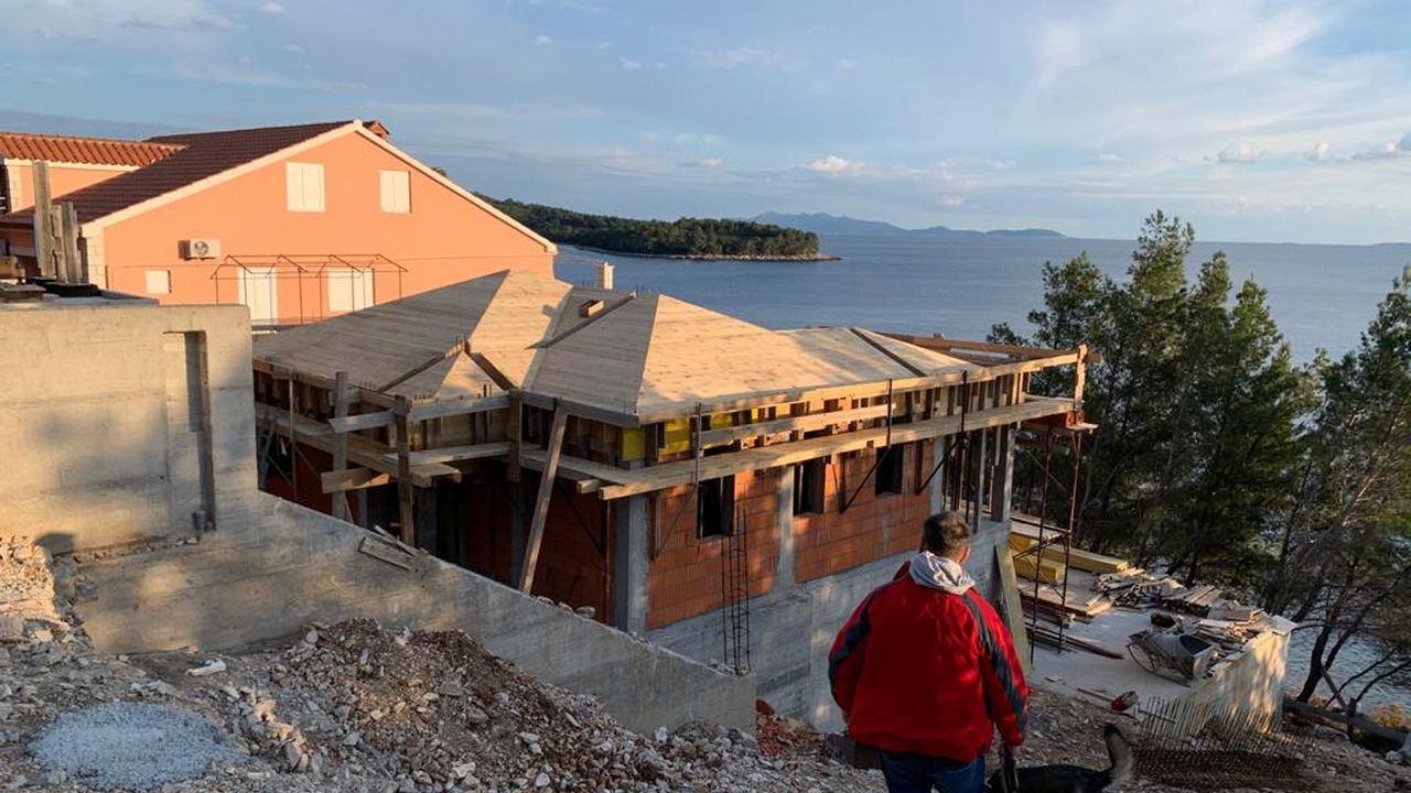 Attractive house with pool in the first row to the sea, Blato-Zaglav, island Korcula for sale. about 600sqm total plot size. mob.385918862899