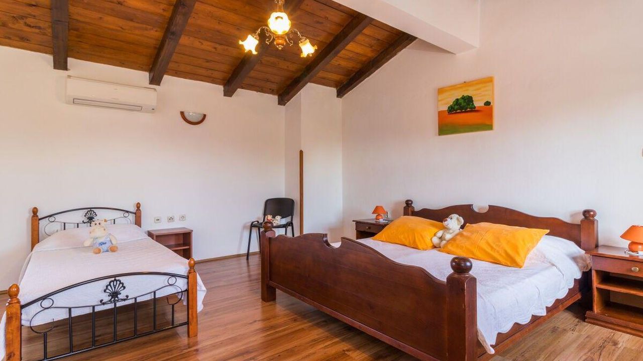 Дом имеет большой второй этаж, где столовая и кухня находятся в одном номере, а гостиная в другом. Сутка в гостиной предназначена не только для отдыха и релаксации, но и может быть использована как дополнительная кровать для двух других людей. Лестница ведет к 3 кондиционированным спальням с отдельными ванными комнатами. В 2-х номерах есть 2 кровати 180x200 и 90x200, в одном номере есть 1 кровать 180x200.