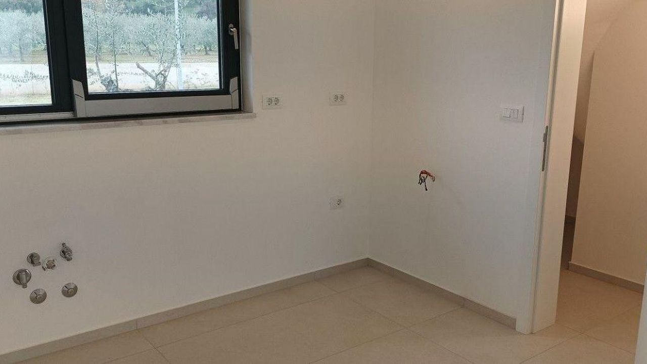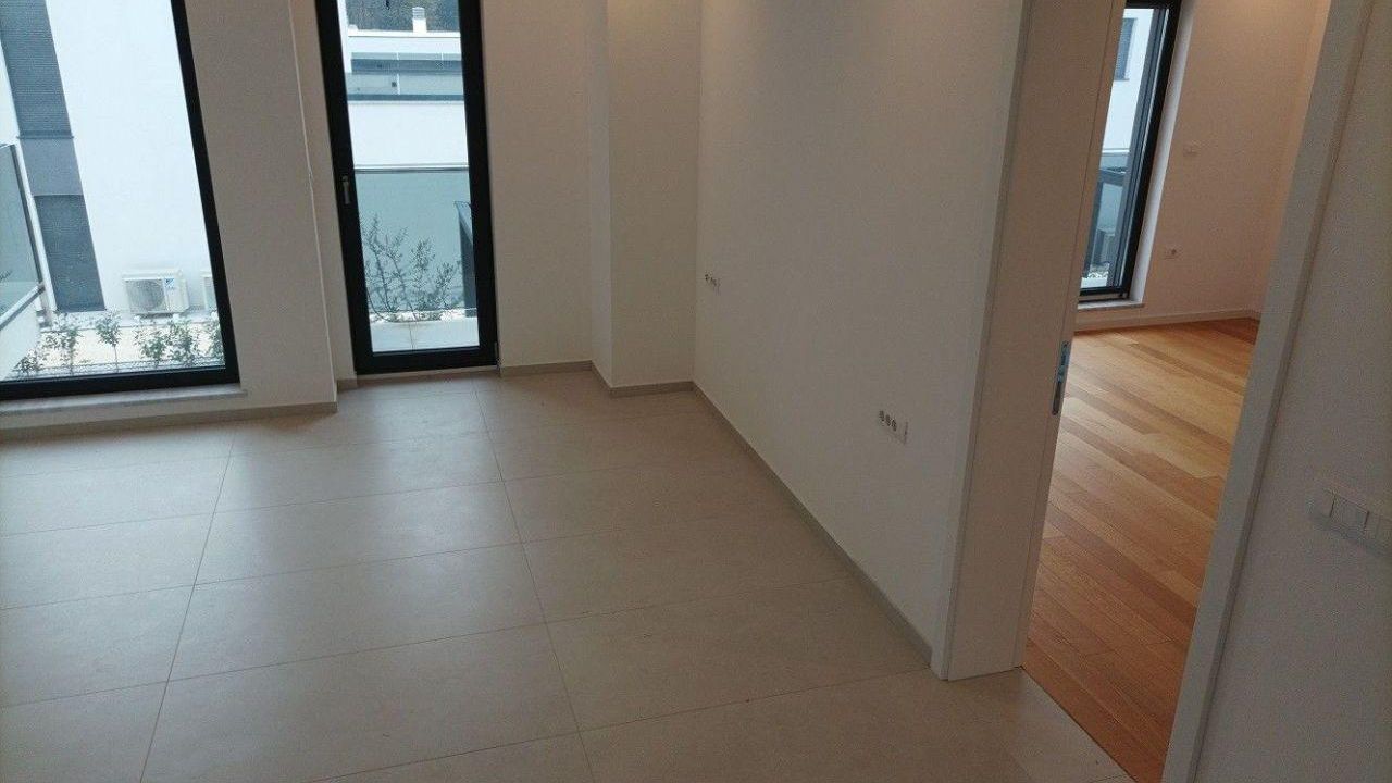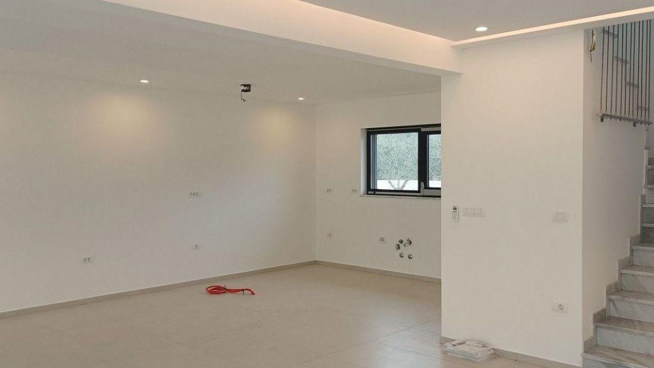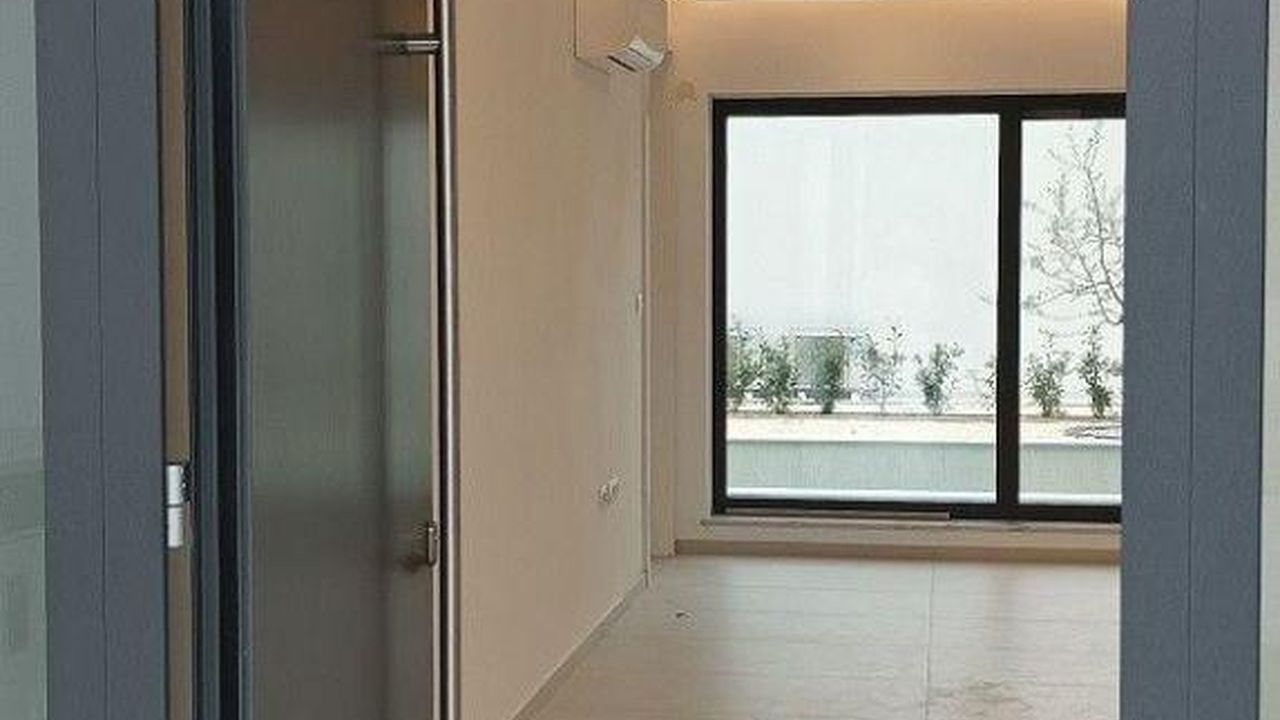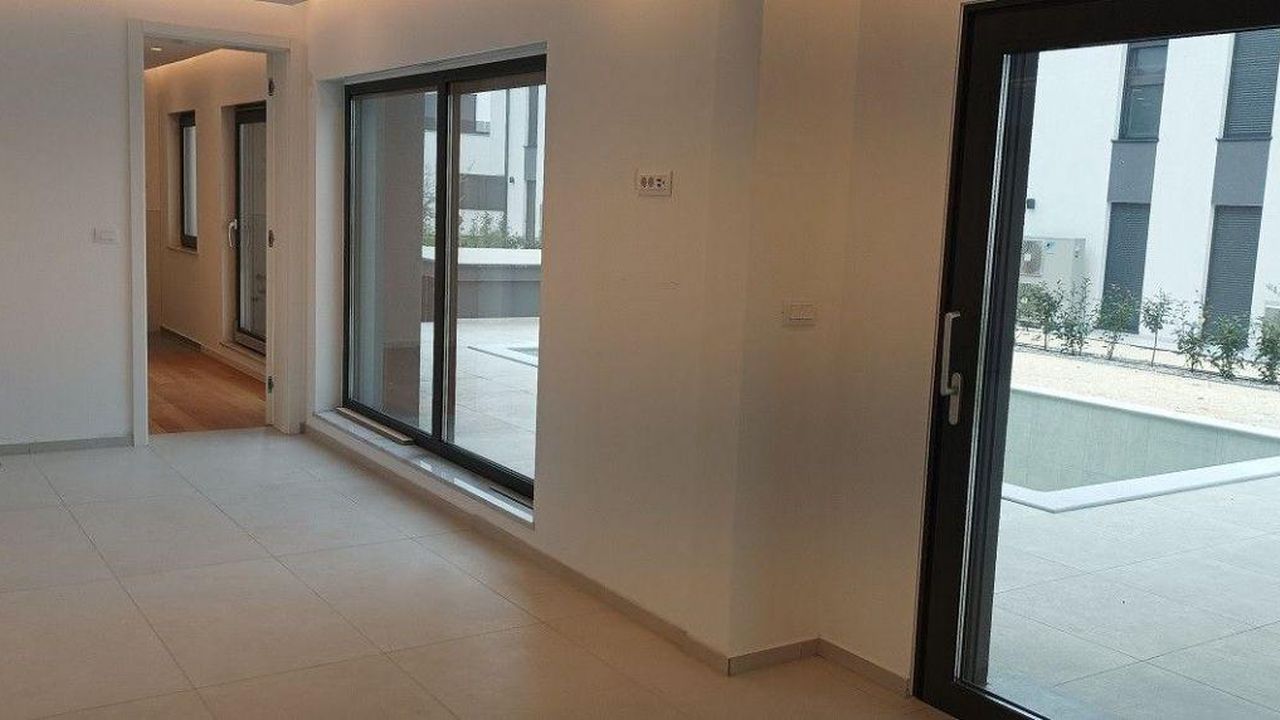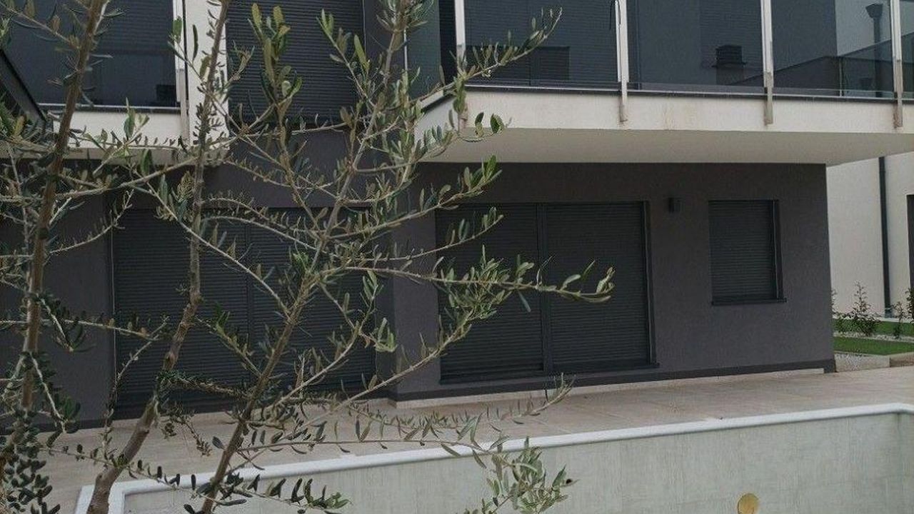 Существует также большая гостиная с кухней и столовой, небольшая кладовая. Высокие потолки, потолочное освещение организовано. Гостиная доминирована стеклянными стенами с алюминиевой партией с доступом к саду и бассейну.
