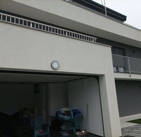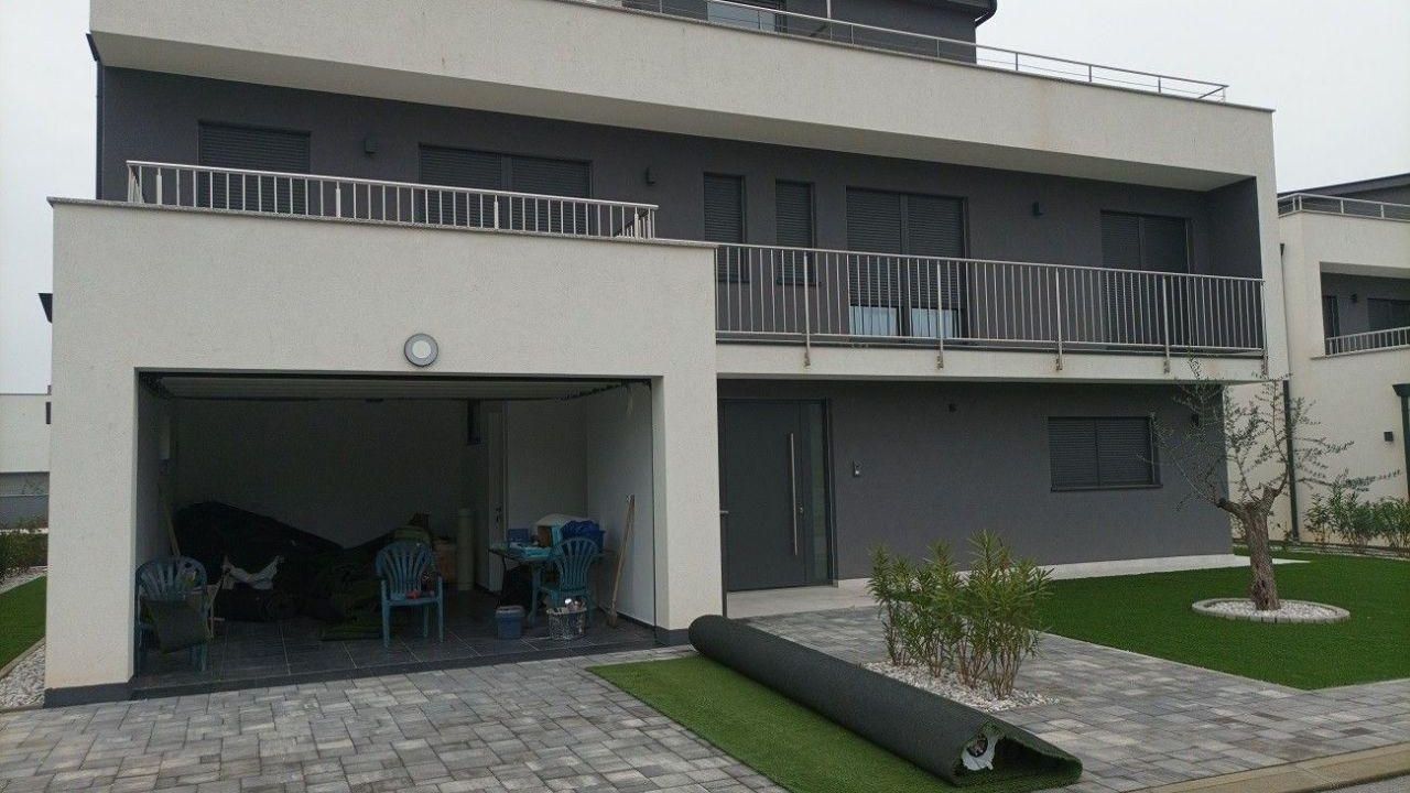 Давайте продолжаем подниматься по лестнице, где есть 1 меньший зал в чердаке с центральным тепловым насосом. Непосредственно с лестниц вы можете получить доступ к большой террасе на крыше с навесом. Терраса покрыта мягкой искусственной травой и не требует особого ухода.
