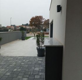 Вилла расположена в ландшафтном дворе, который требует минимального технического обслуживания. Двор окружен средиземноморскими растениями, которые остаются зелеными круглый год, с автоматическим поливом.