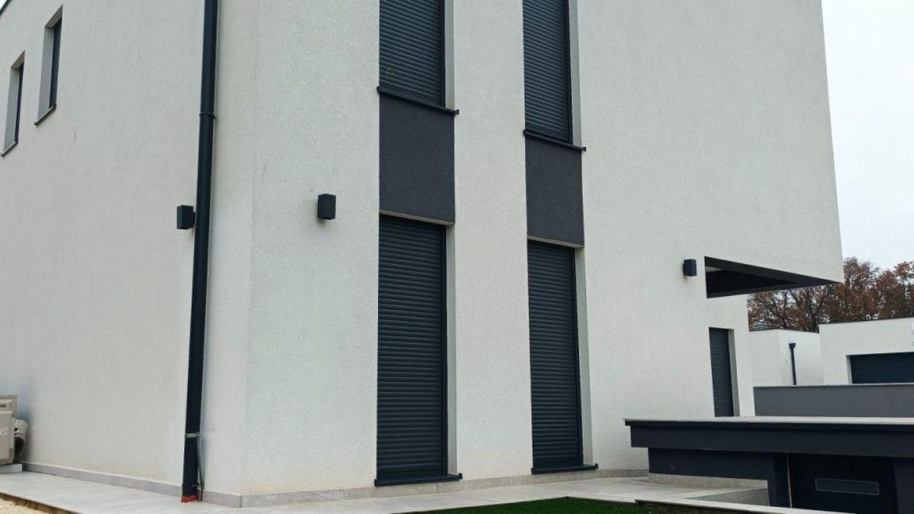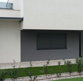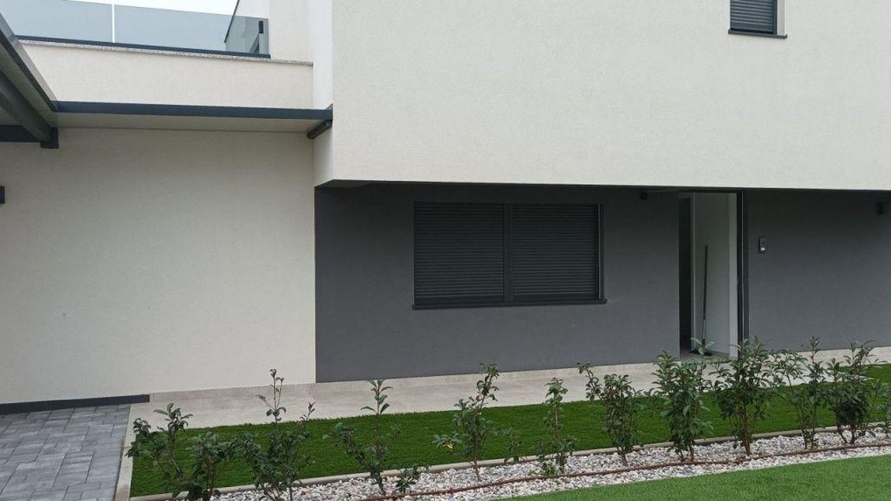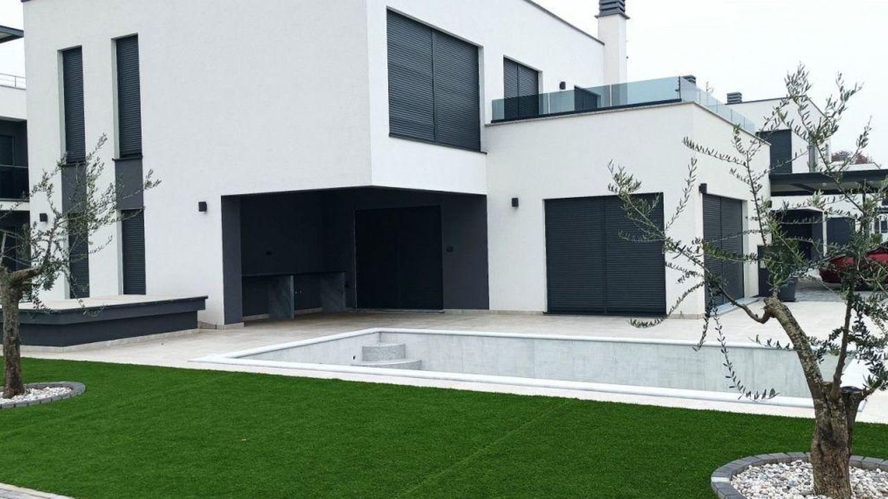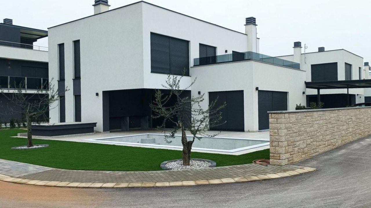 Два открытых парковочных места и ландшафтный сад с бассейном площадью 30 м2 расположены отдельно. Двор не требует особого ухода, так как он вымощен и частично покрыт искусственной травой. В некоторых местах средиземноморские растения посадят в цветочных точках или вокруг сада с системой самоохождения.