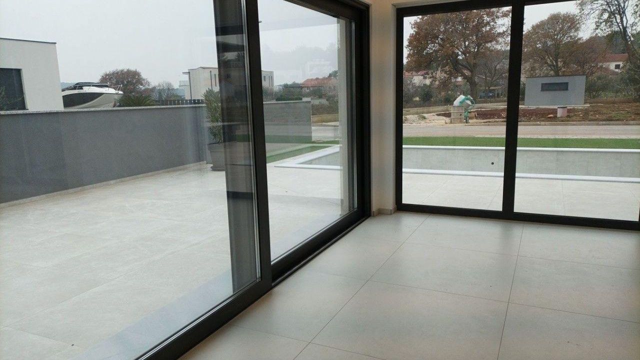 Высокие потолки, потолочное освещение организовано. Гостиные доминируют стеклянные стены с алюминиевой партией.