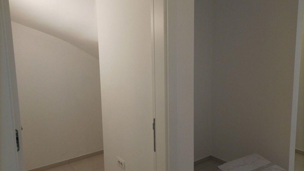 Справа от зала есть ванная комната, лестница на второй этаж и далее по коридору спальня, рядом с которой есть еще один меньший зал, который можно использовать как кладовка для бытовых предметов или в качестве гардероба.