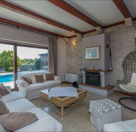 Современная и просторная вилла состоит из 4 просторных и красиво оформленных спален, 3 из которых имеют двуспальные кровати и одну спальню с двуспальной кроватью. Есть 3 ванные комнаты с душем и феном. Современная кухня оснащена посудомоечной машиной, духовкой и микроволновой печью. Рядом с кухней есть столовая с обеденным столом. Таверна или таверна подключены с кухни, где есть большой деревянный стол и открытый камин.