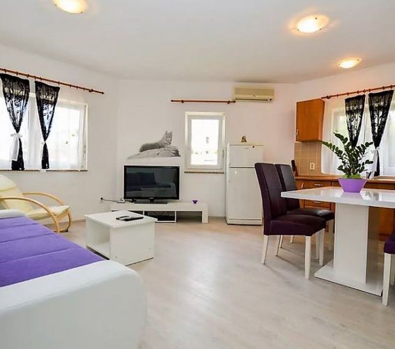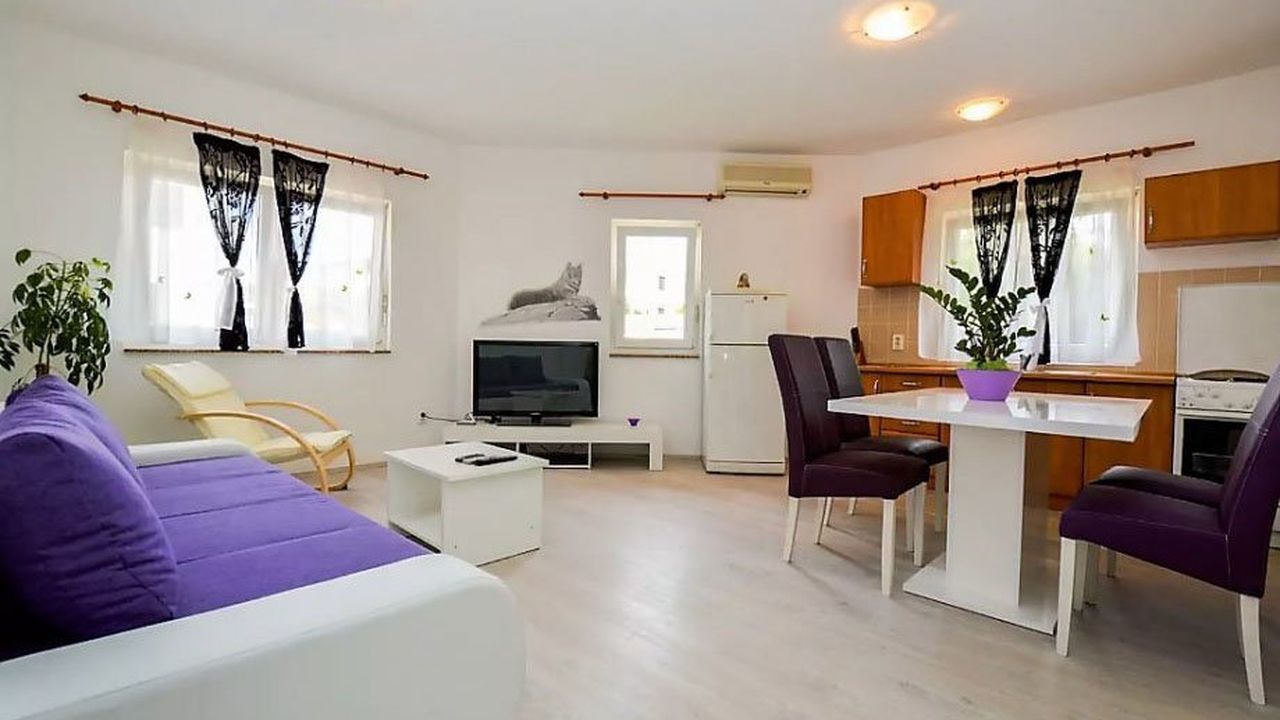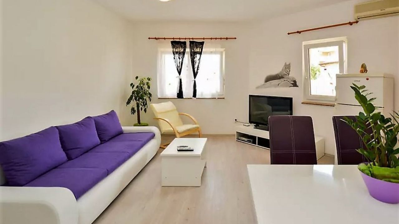 Уютная квартира с 1-мя спальней и участком 100 кв.м. в Медулинe в 500 метрах от моря и шаговой доступности от туристической и повседневной инфраструктуры. Квартира продается с меблировкой и готова к заселению.