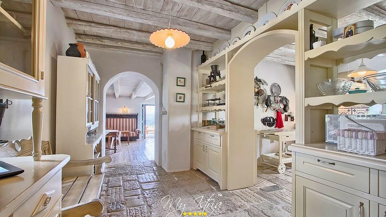 Вилла имела официальную категорию как апарт-отель 4 звезды. Общая площадь виллы – 600м2. Она расположена в уединенном месте гарантирующем приватность своим гостям. Общая площадь принадлежащей вилле территории практически 10000 м2., что является неоспаримым преимуществом. Вилла предлагает своим гостям открытый бассейн, детскую и гриль-площадку, так же на территории расположен виноградник и сад оливковых деревьев, ежегодно приносящий урожай.