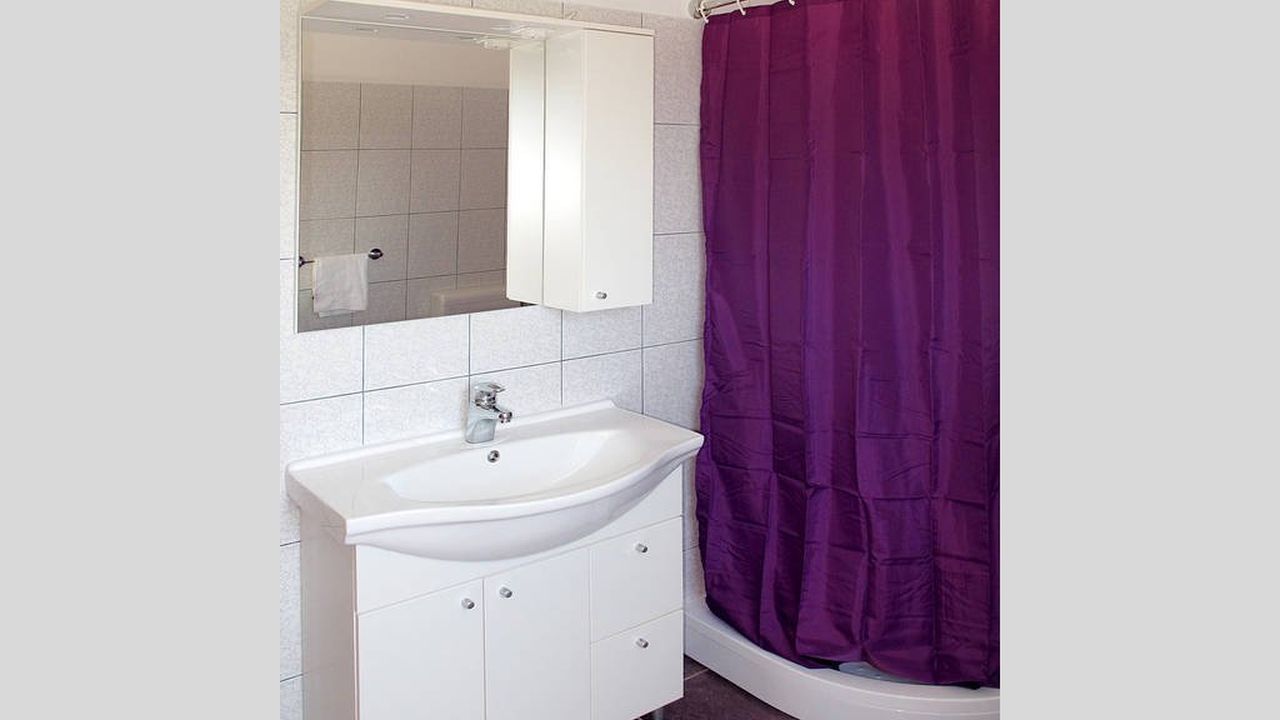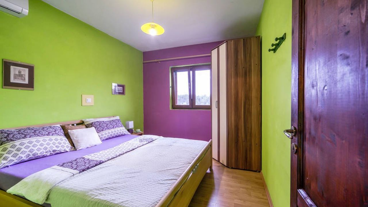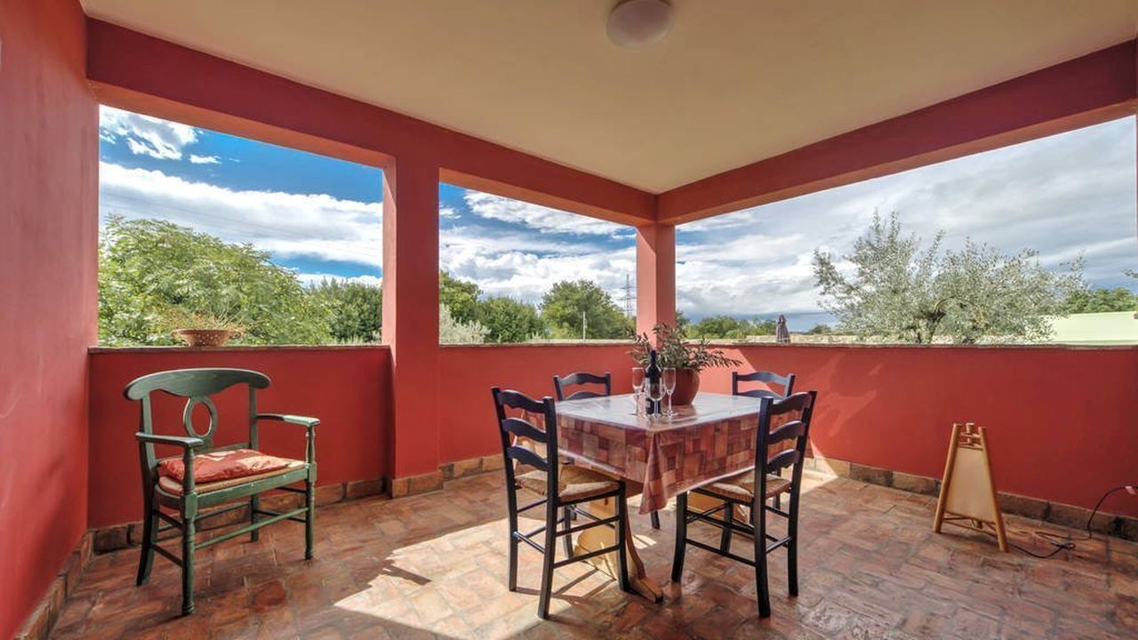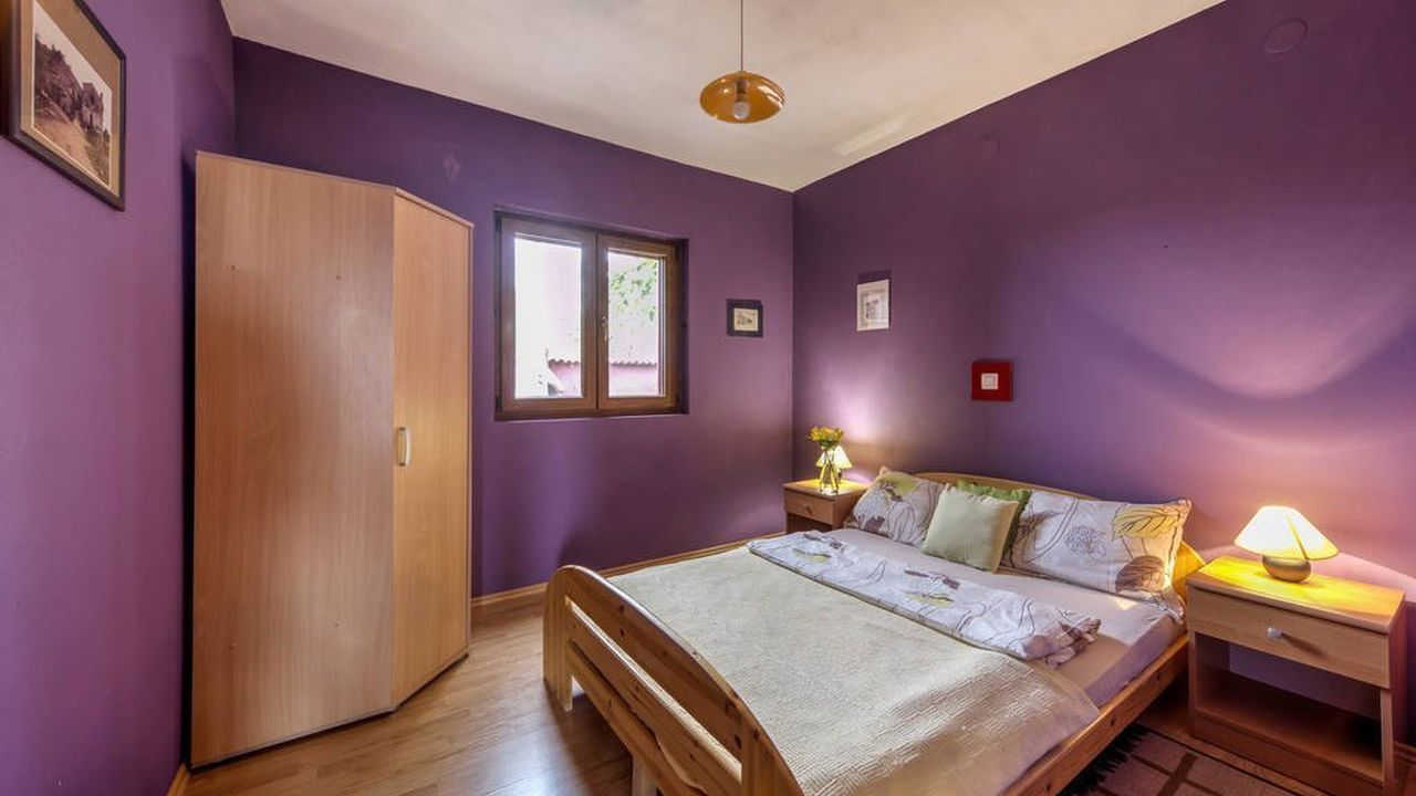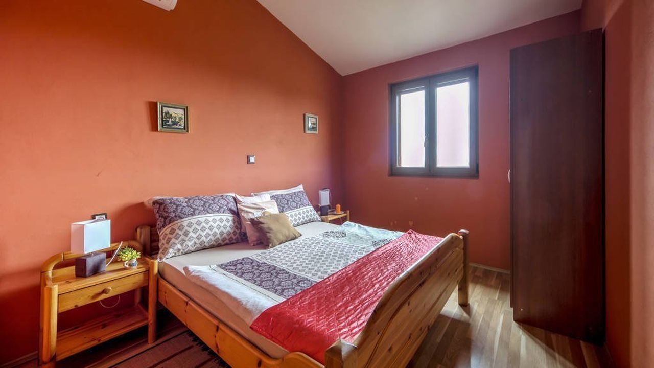 Внешние ступеньки ведут на второй этаж, где находятся 2 спальные комнаты, ванная комната, кухня с гостиной и столовой, терраса.