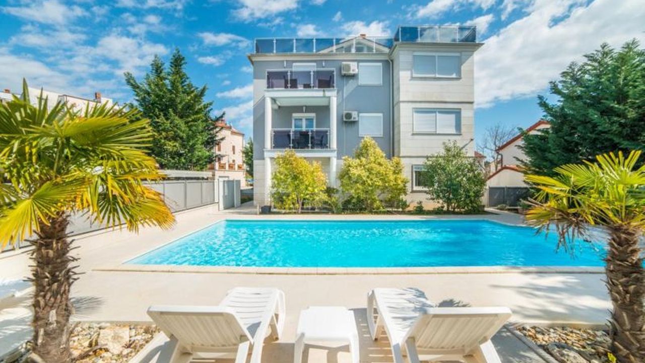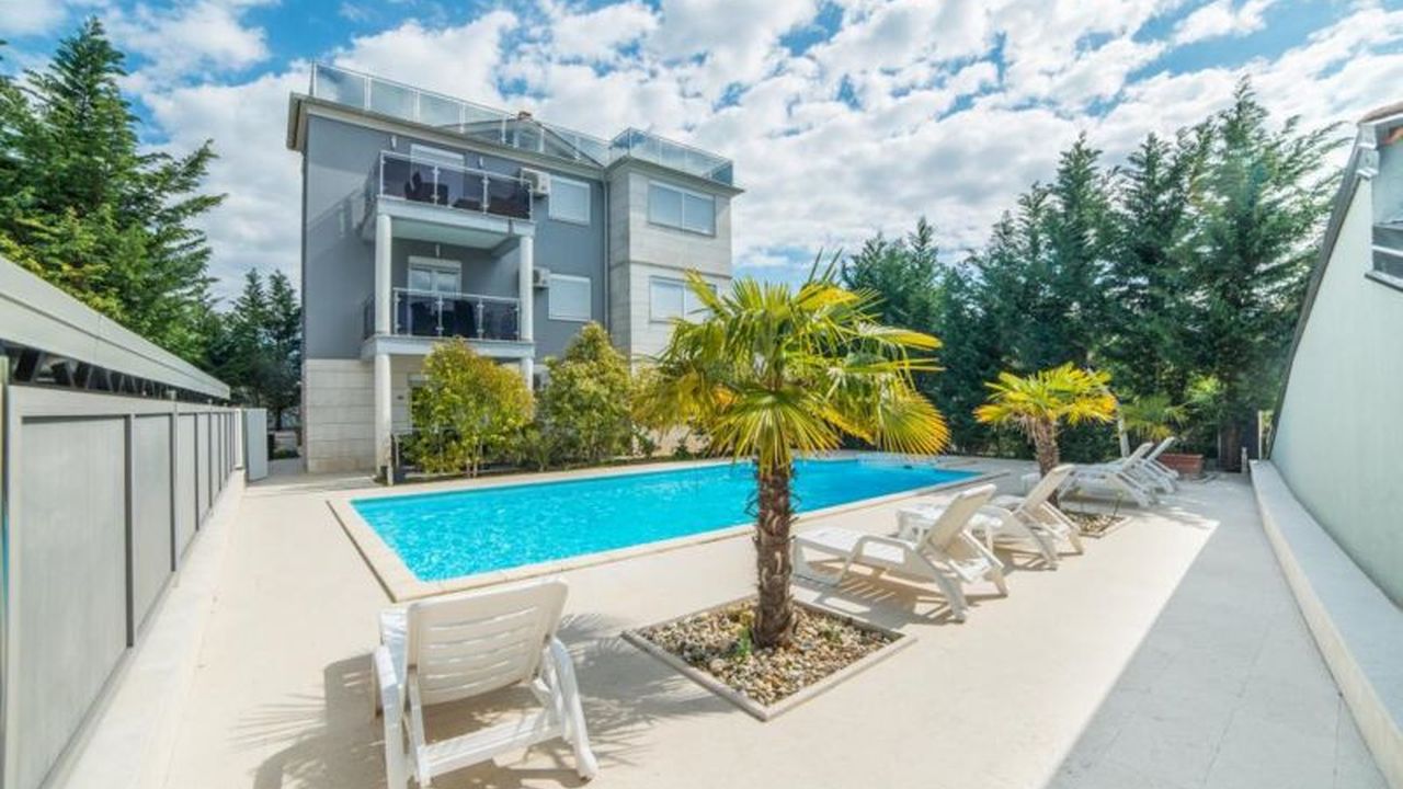 Предлагается мини-гостиница на отличной туристической локации в самом востребованном районе Пулы – Песчаной Увале, в 170 метрах от галечного пляжа, в шаговой доступности от кафе-ресторанов, теннисного корта, детской площадки и супермаркета. Дом включает в себя три жилых этажа, цокольный этаж с окнами и кондиционером, гараж. Первый этаж: Апартамент 100 кв.м, который состоит из просторной гостиной, объединенной с кухней-столовой, двух спален, двух балконов, ванной комнаты и санузла с душем; Апартамент 45 кв.м – гостиная с кухней, спальня, два балкона и санузел. Второй этаж: Апартамент 100 кв.м включает в себя просторную гостиную, объединенную с кухней-столовой, три спальни, два балкона и два санузла; Апартамент 45 кв.м – гостиная с кухней, спальня, два балкона и санузел. Третий этаж: Двухуровневый апартамент 150 кв.м с двумя спальнями, гостиной, объединенной с кухней-столовой, двумя балконами, двумя санузлами, комнатой, расположенной на галерее с выходом на большую террасу 30 кв.м с великолепным видом на море; Апартамент 45 кв.м – гостиная с кухней, спальня, санузел и два балкона. Все апартаменты меблированы и оснащены современной бытовой техникой и кондиционерами. Проведено центральное газовое отопление с индивидуальными бойлерами в квартирах. Установлены системы сигнализации и видеонаблюдения. На ухоженном озелененном участке расположены бассейн, зона отдыха с лежаками и душем, барбекю. На придомовой территории имеется крытая парковка на пять машиномест.