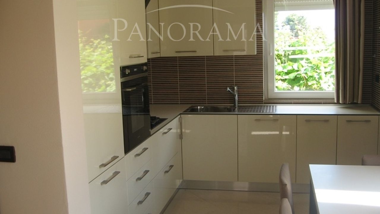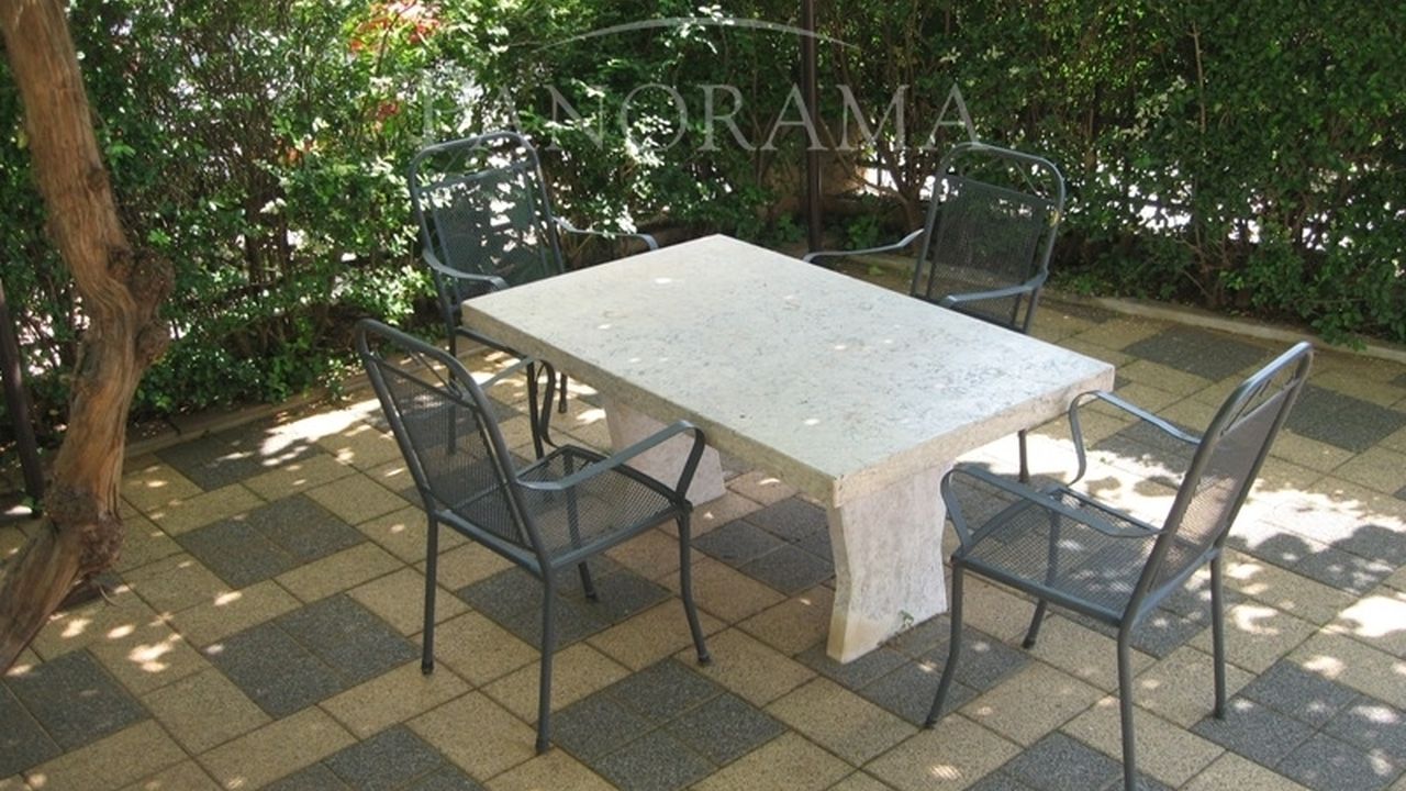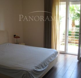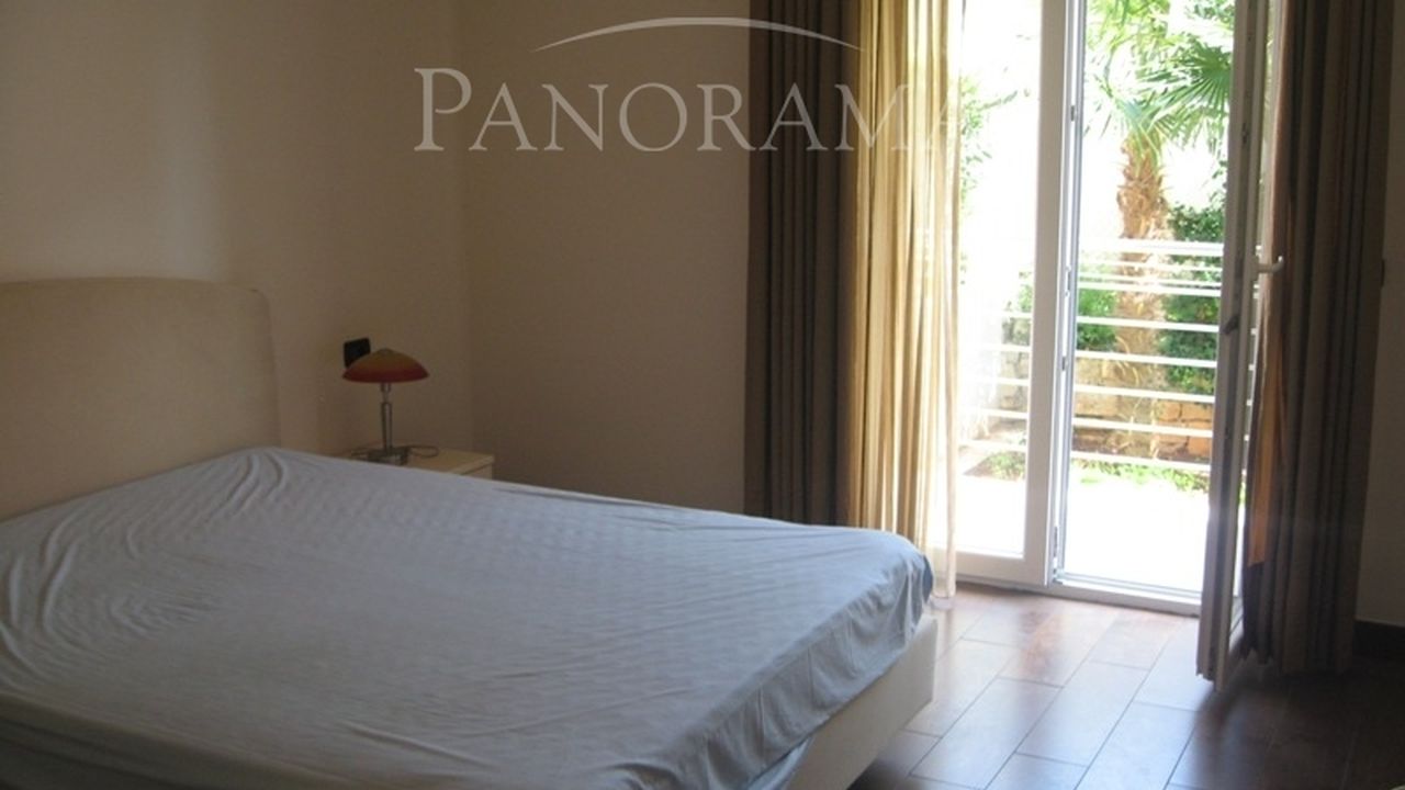 Предлагается квартира на аттрактивной локации в Ровине, всего в 500 метрах от моря и от центра города. Квартира расположена на первом этаже двухэтажного дома. Площадь 102 кв.м состоит из прихожей, гостиной, кухни-столовой, двух спален, двух санузлов и трех террас,одна из которых ведет в собственный дворик 30 кв.м с зоной для отдыха и уличным камином. Во время строительства дома и внутренней отделки использовались материалы высшего качества. На придомовой территории имеется парковочное место, а на цокольном этаже - кладовка.
