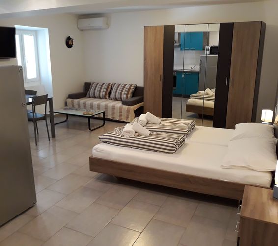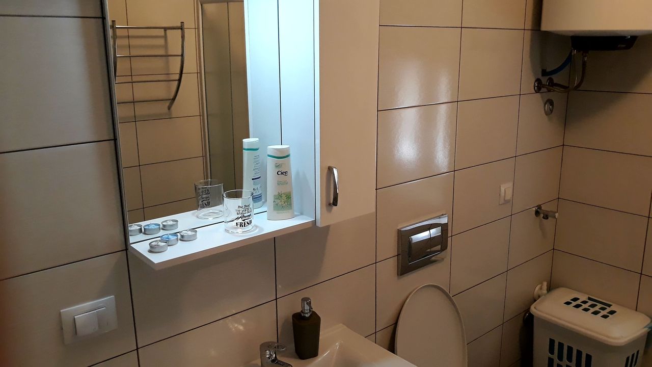 Fully equipped and fully renovated apartment (bathroom and living area + kitchen) on the 1st floor of the residential building in the main commercial street of the historical town of Rovinj, in near proximitiy of the sea, main town square, international bus station and ferry landing, various shops and restaurants and anything lse you need