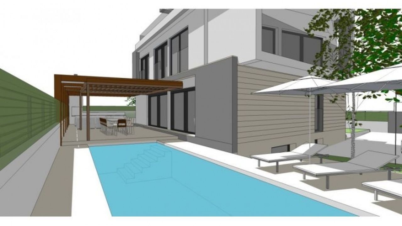 Новая строящаяся современная вилла авангардной архитектуры в Ровини!